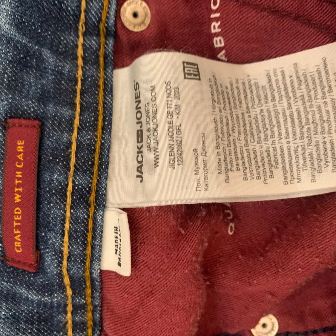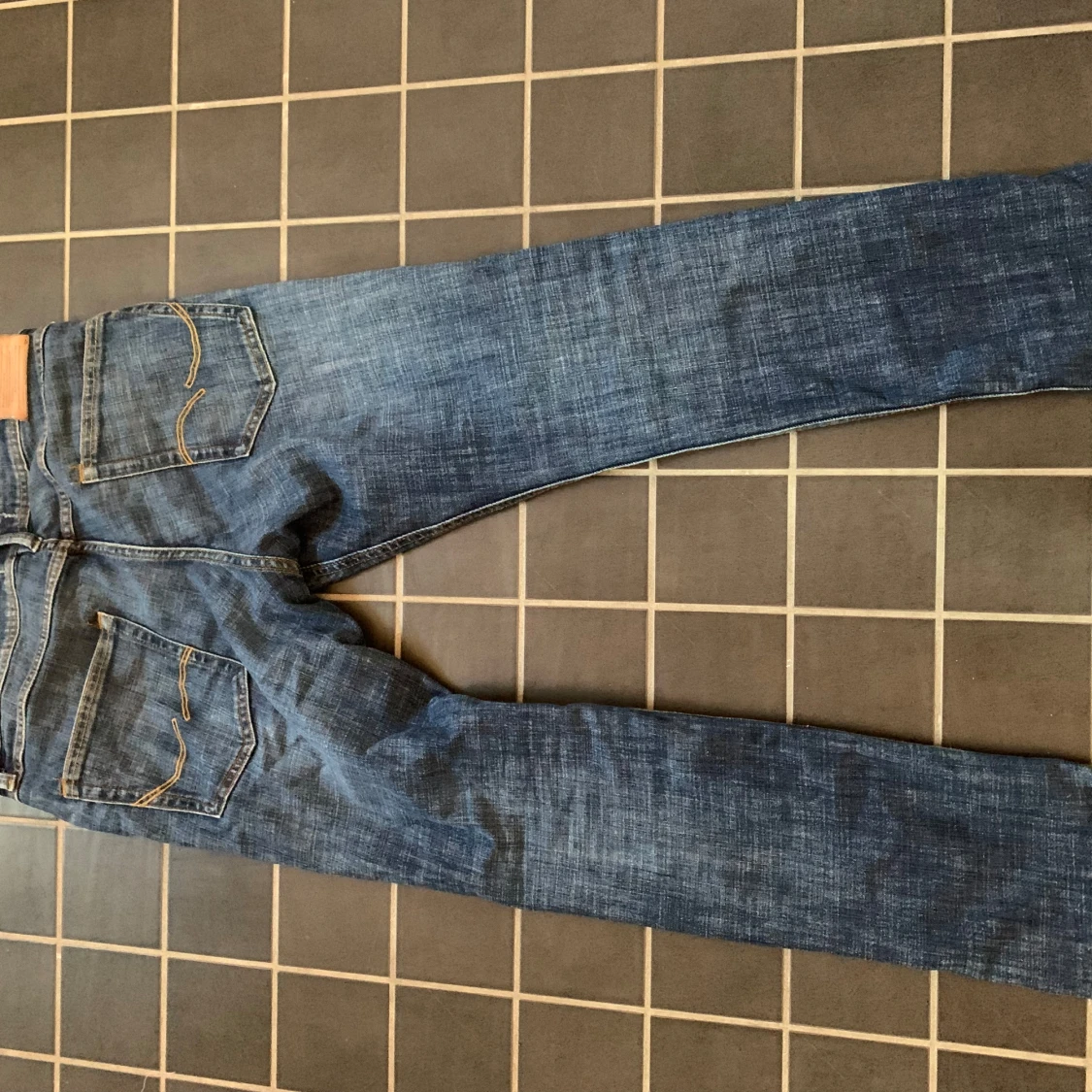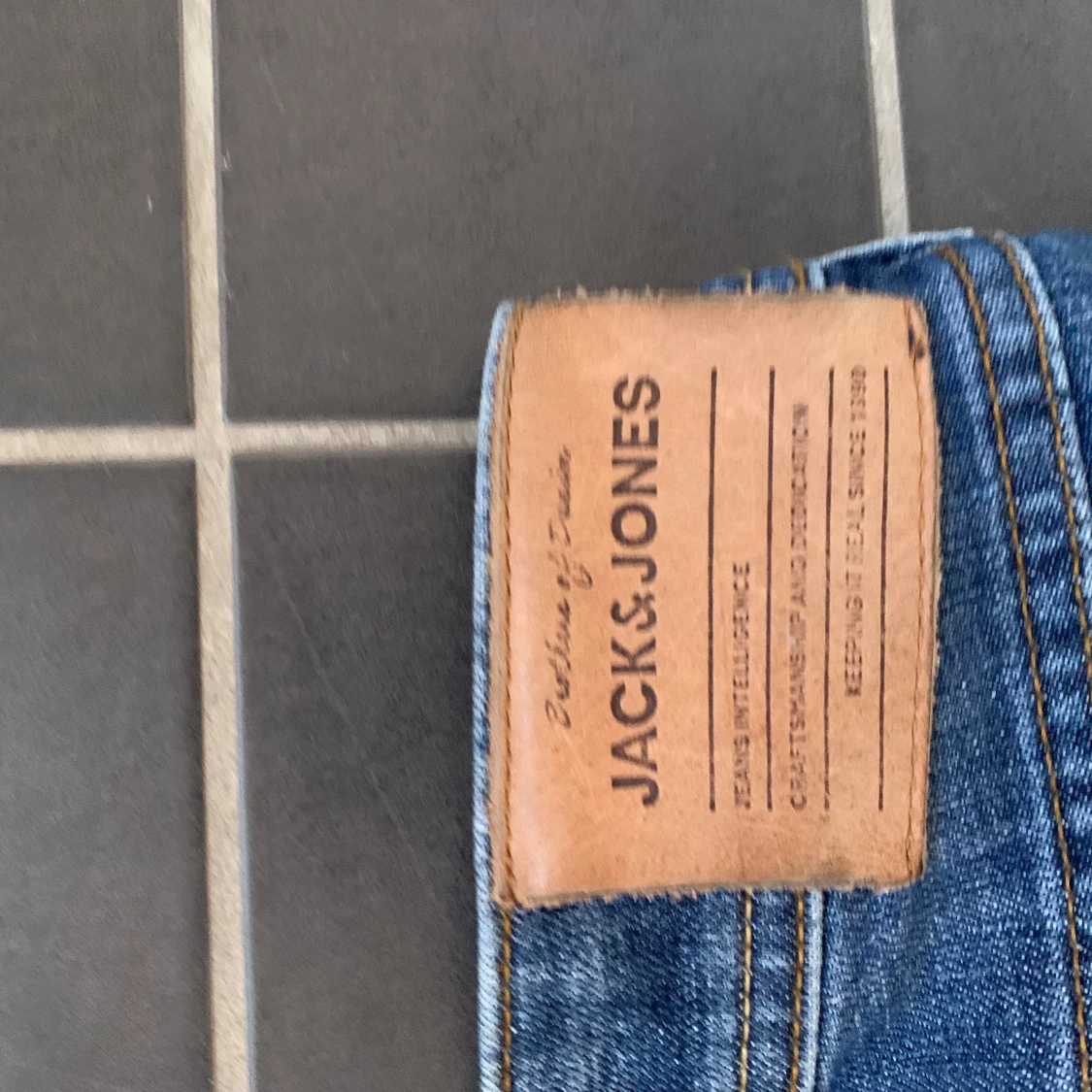 Säljer ett par blå jeans från Jack & Jones med klassisk femficksdesign och snygga slitningar på framsidan. Jeansen har raka ben och är tillverkade i bomull med en autentisk denimkänsla. Perfekta för dig som gillar en avslappnad och tidlös look.
