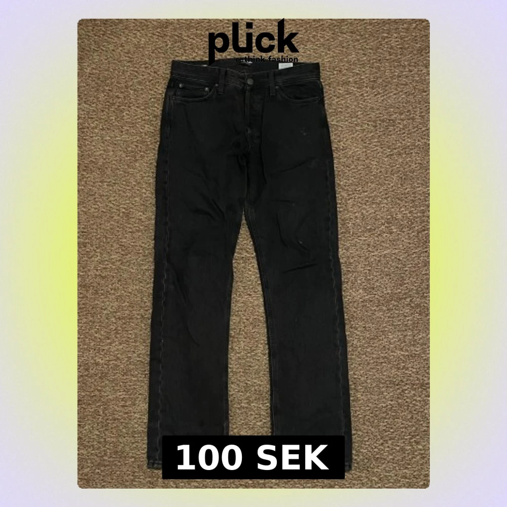 Säljer ett par svarta jeans från Jack & Jones med klassisk femficksdesign och raka ben. Jeansen är tillverkade i slitstarkt denimtyg. Perfekt för dig som gillar en enkel och clean look.