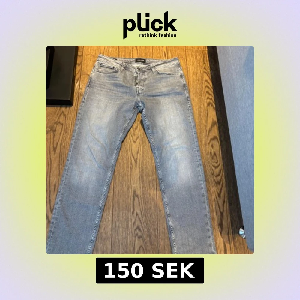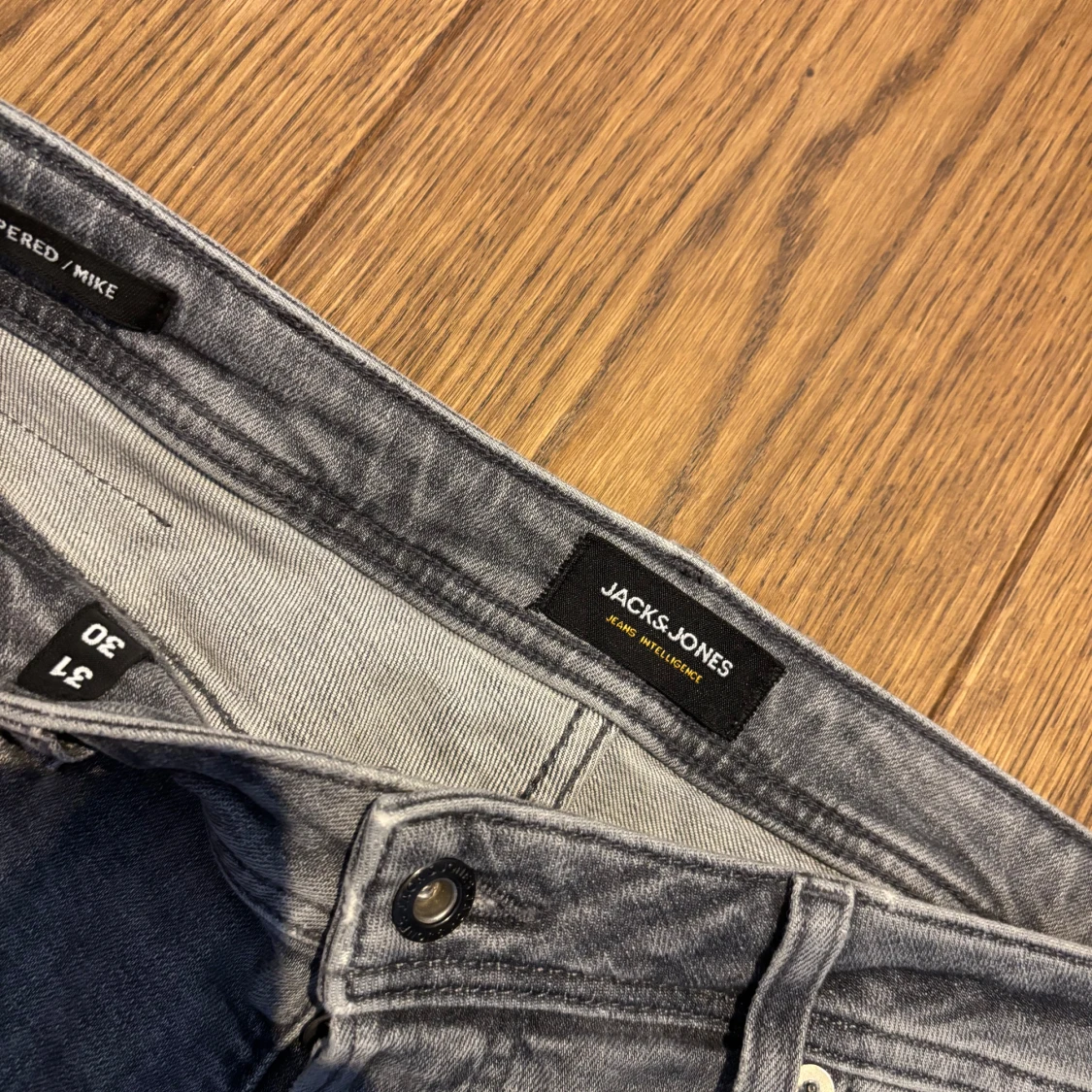 Säljer ett par grå jeans från Jack & Jones i modellen 'Glenn Original'. Jeansen har klassisk femficksdesign, dragkedjegylf och raka ben. Perfekta för dig som gillar en stilren och enkel look.