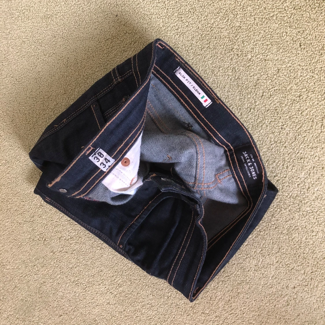 Säljer ett par mörka jeans från Jack & Jones, modell: Slim fit/Glenn 🇮🇹passform bild 3, storlek: W30 L34, nypris: 1000kr, mitt pris: 149kr, skriv vid funderingar!