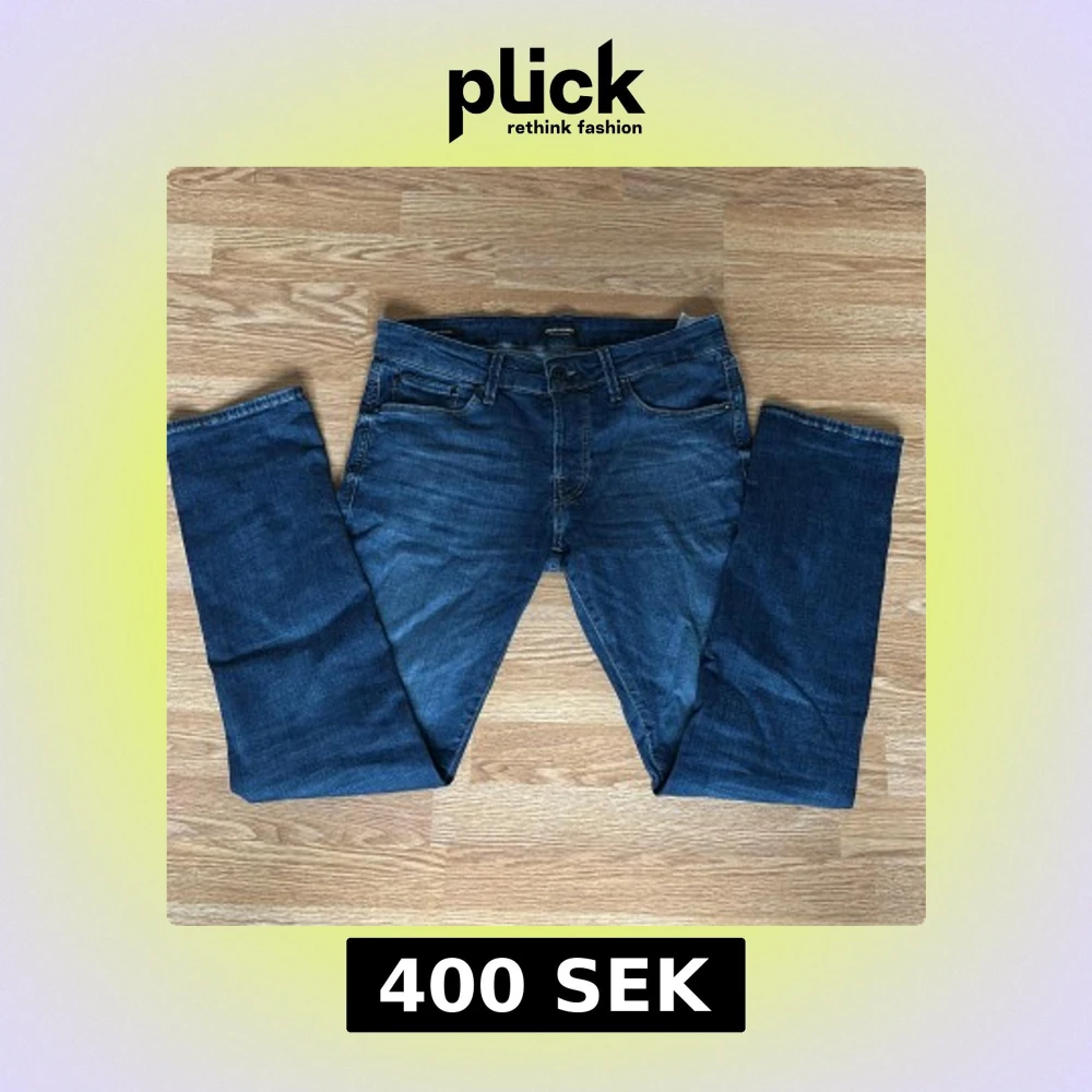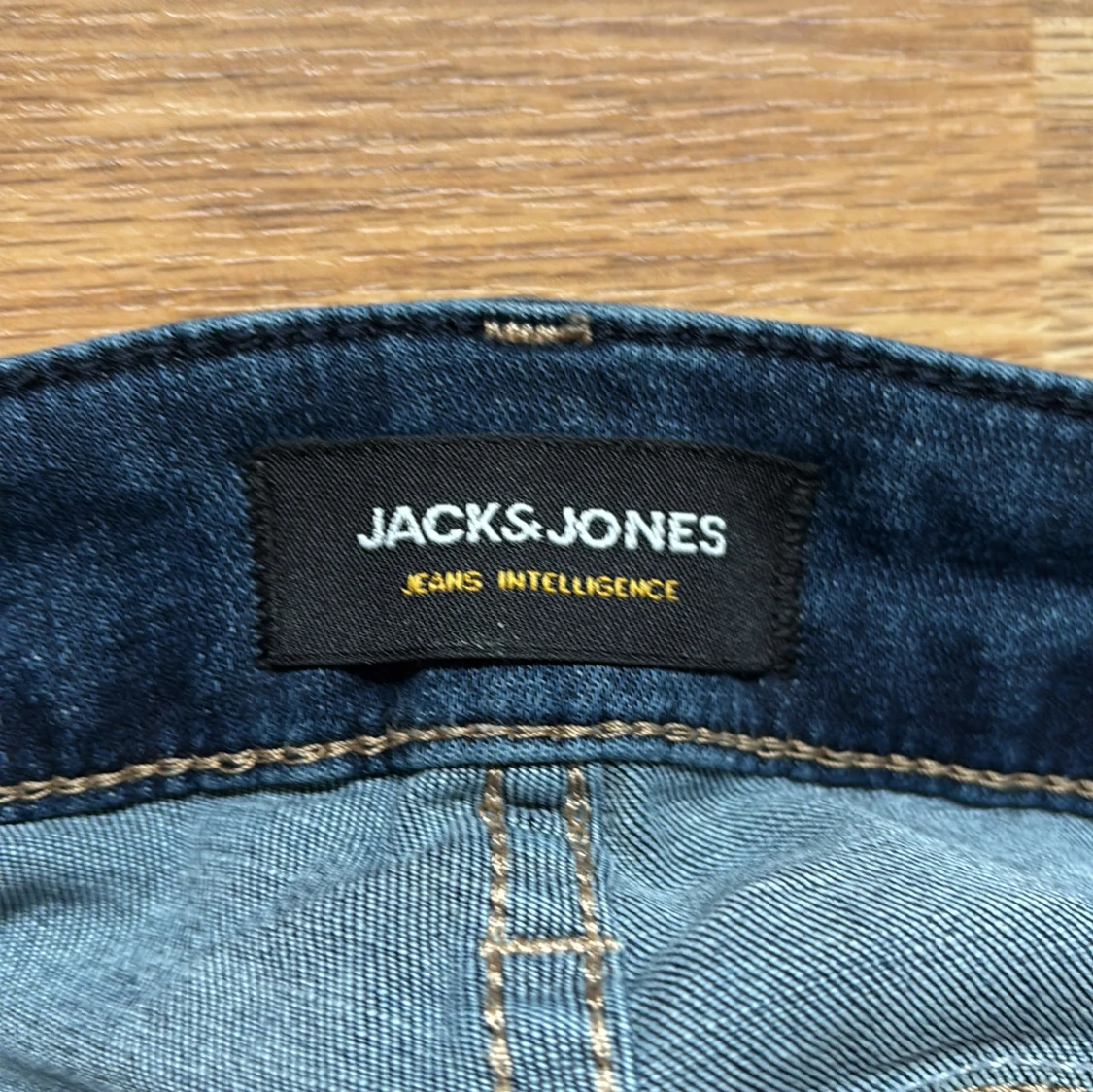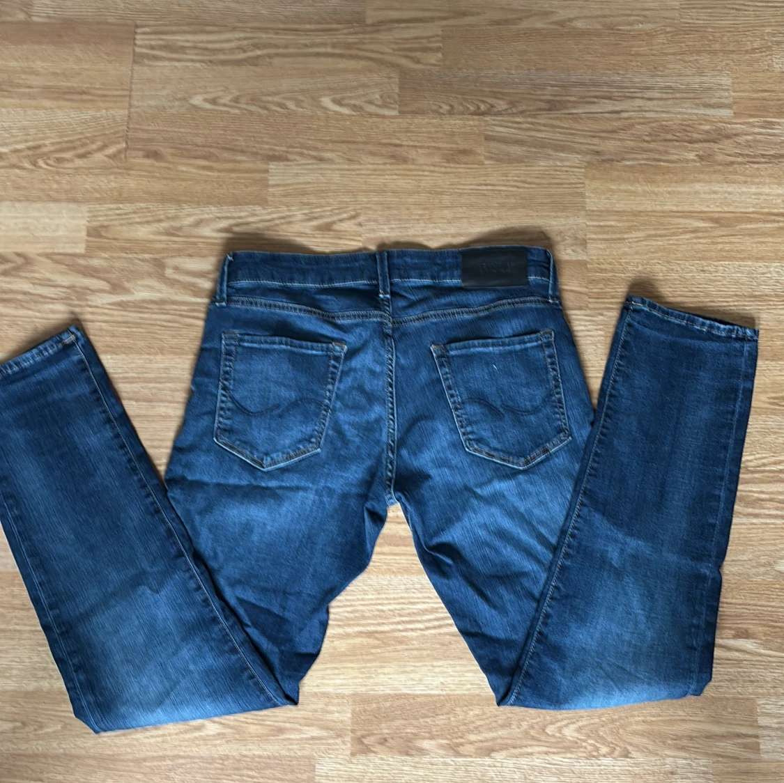 Säljer ett par klassiska blå jeans från Jack & Jones med normal passform. Jeansen har fem fickor, dragkedja och knapp i midjan. Perfekta för dig som gillar en tidlös stil. Nypris 699kr