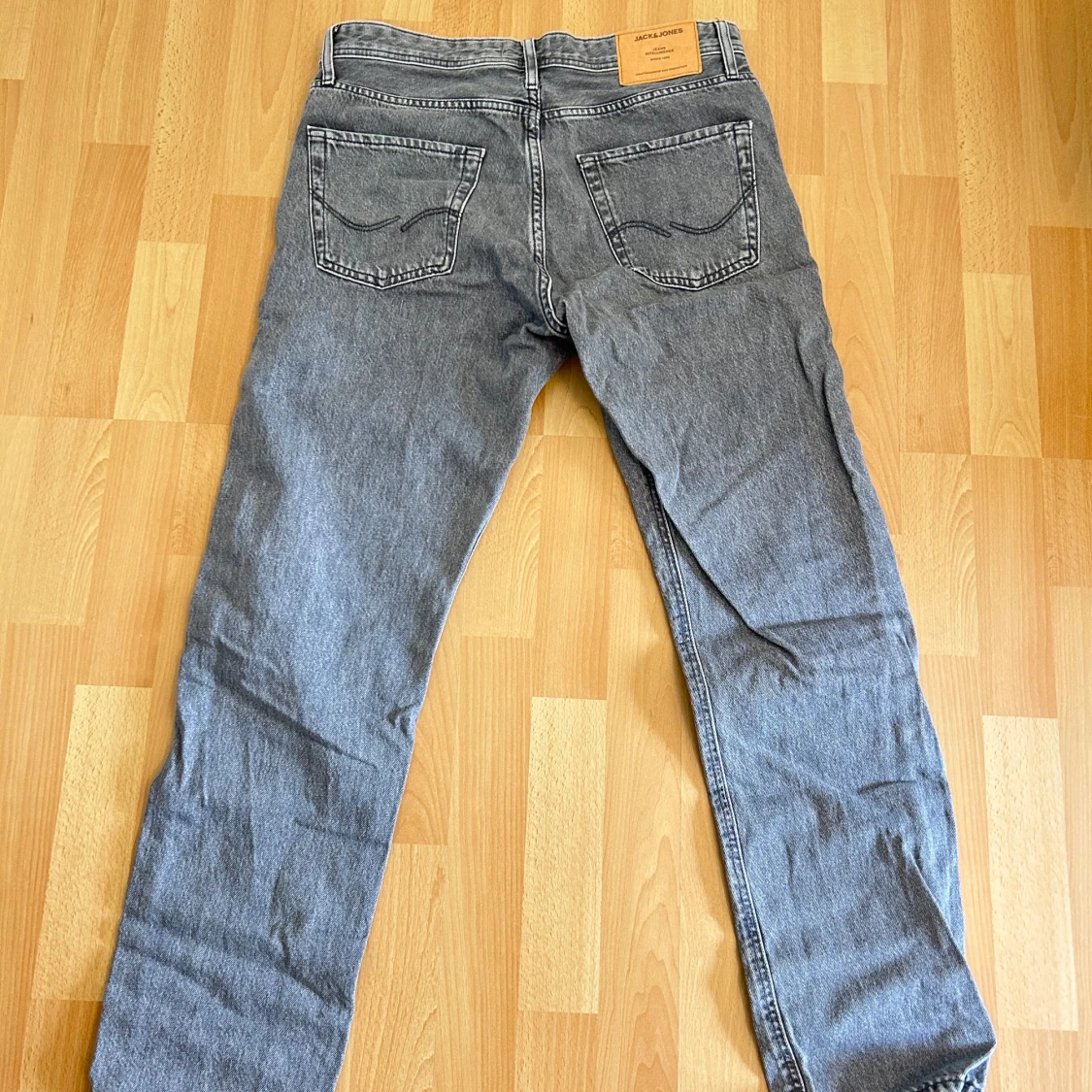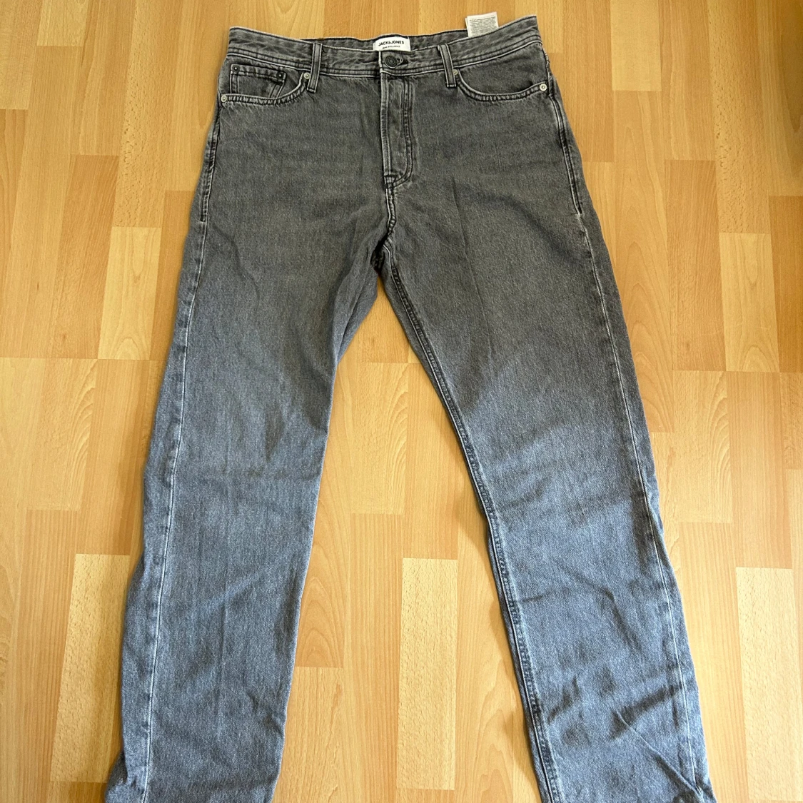 Snygga grå jeans från Jack & Jones i loose fit-modell Chris. Klassisk femficksdesign, raka ben och normal midja. Jeansen är tillverkade i mjukt bomullsjeansmaterial och har en avslappnad vibe som passar perfekt till sneakers och hoodie.