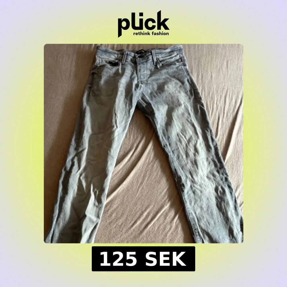 Slim fit jeans från Jack & Jones i en snygg ljusgrå tvätt. Klassisk femficksmodell med dragkedjegylf och bälteshällor. Jeansen är tillverkade i bomull med en smal passform som sitter snyggt längs benen.