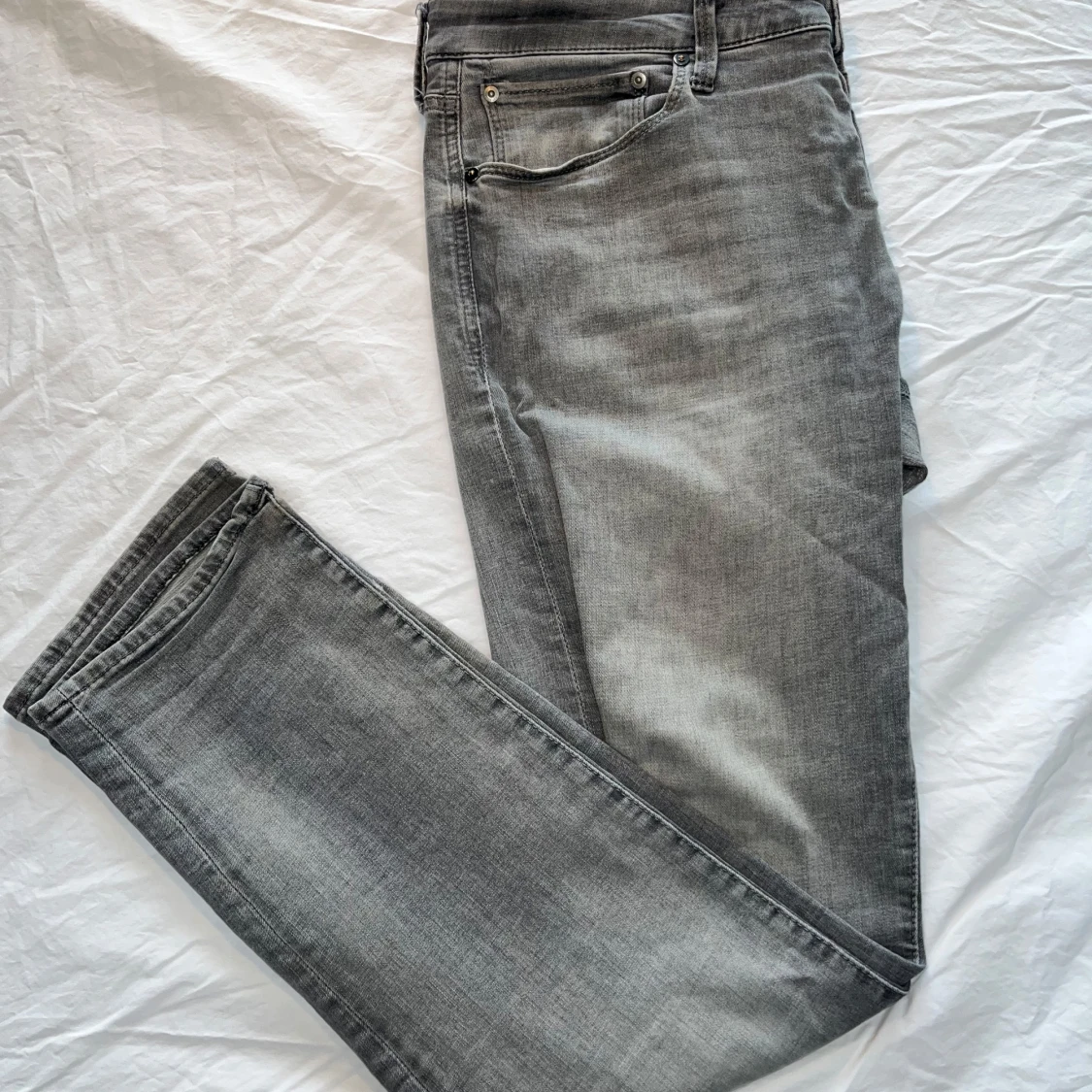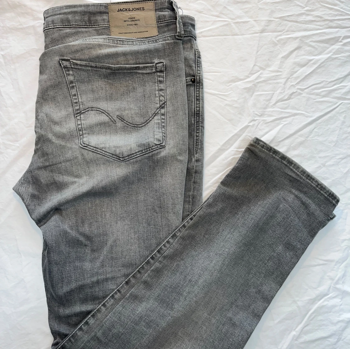 Säljer nu ett par feta grå jeans från Jack and Jones. Dom är i bra skick förutom en lagning vid skrevet men det är bra gjort så att det inte syns👍 Dom är perfekta nu inför sommaren. Dom är i storlek 36x32 och är i slim fit modell. Hör av er vid frågor🤝