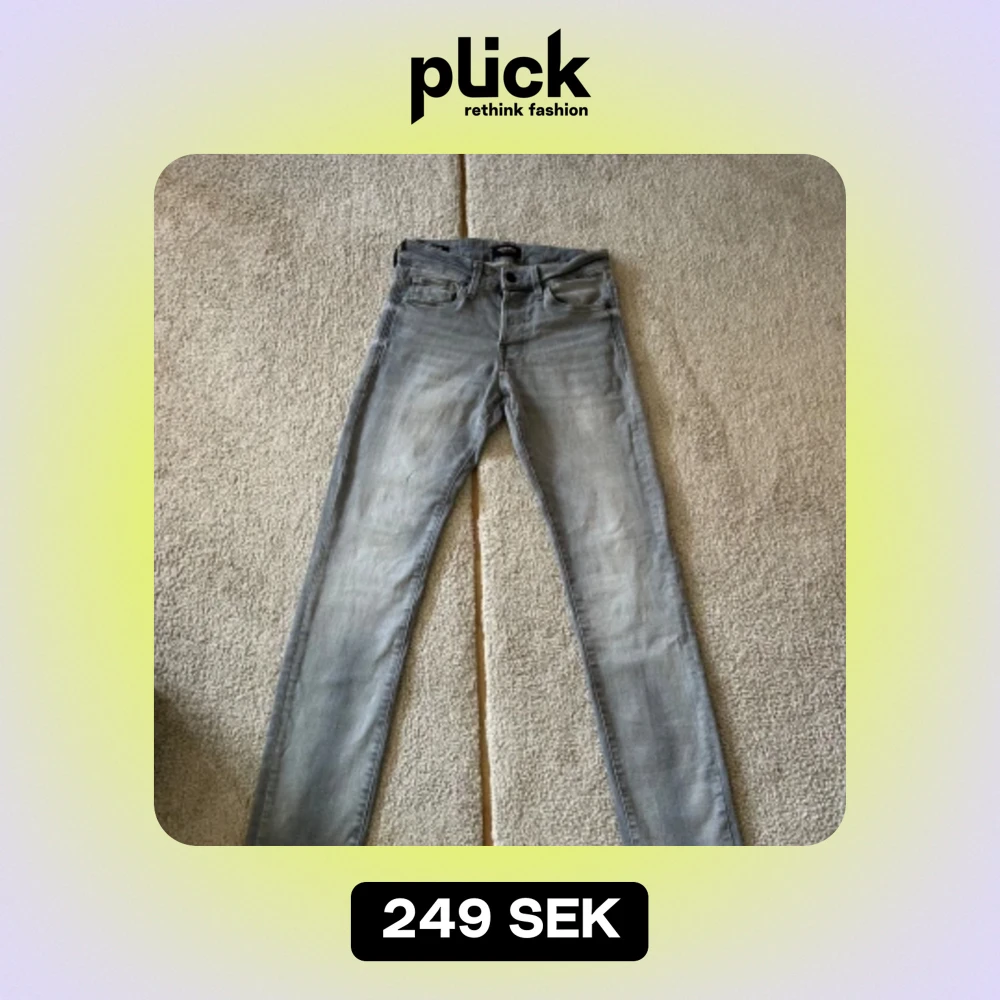 Säljer nu dessa sköna ljusgråa jeans från Jack n Jones som är i storlek 27:30 och modellen är slim/ Glenn. Jeansen har inga slitningar eller skador! Hör av er om fundering och pris