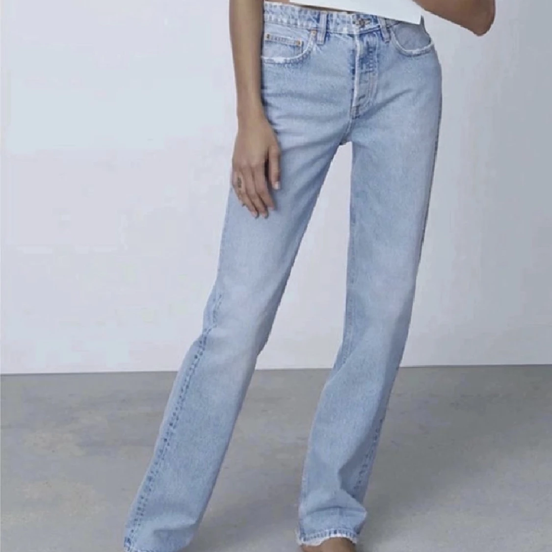 Trendiga lågmidjade jeans från zara i storlek 36, bra skick💓💓(LÅNADE BILDER)