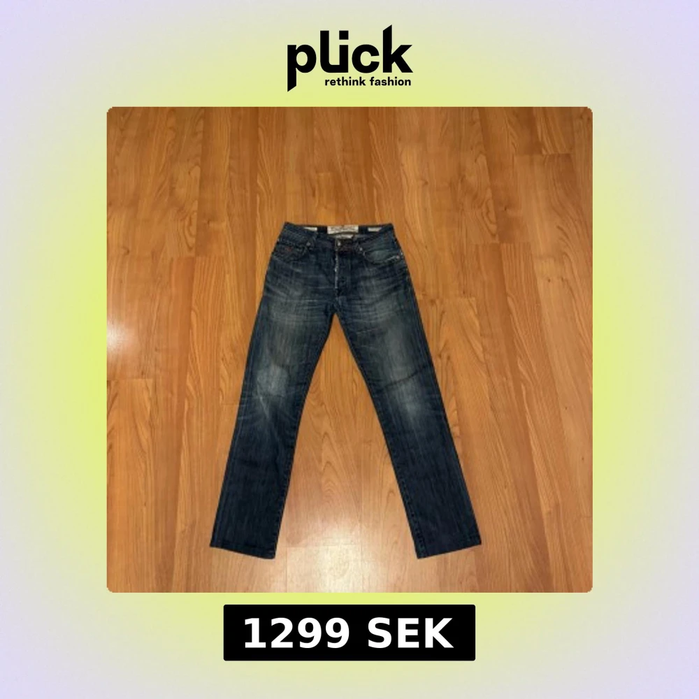 Snygga blå jeans från Jacob Cohen med en klassisk straight fit. De har orange sömmar och en röd etikett baktill. Storleken är w31 . Hör av er vid ytterligare frågor