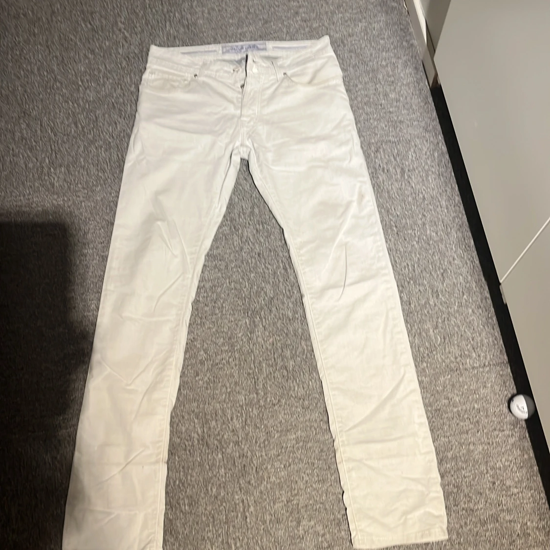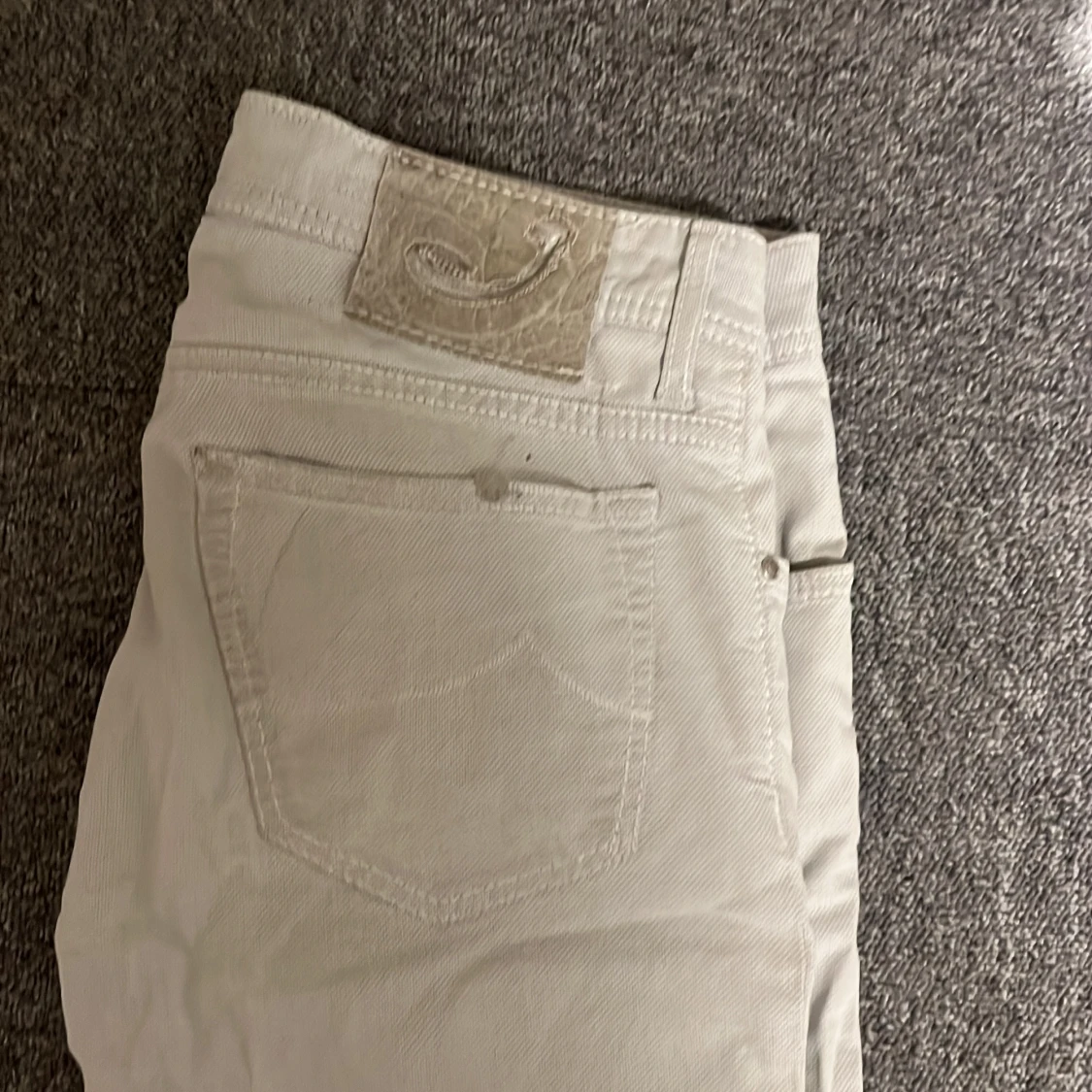 Snygga vita jeansbyxor från Jacob Cohen med klassisk femficksdesign och ikonisk logga på bakfickan. Byxorna har raka ben och silverfärgade knappar och stilren look.