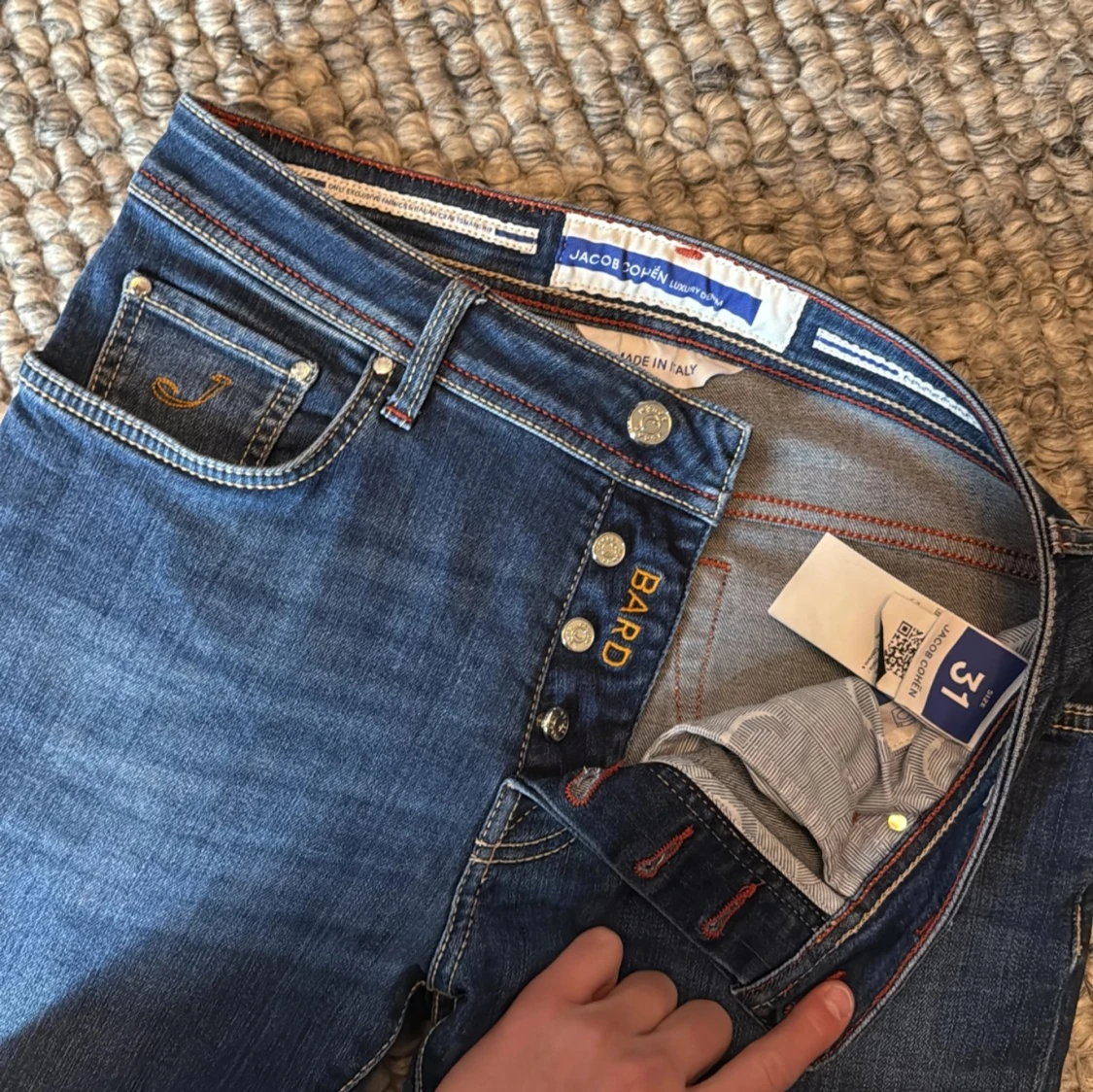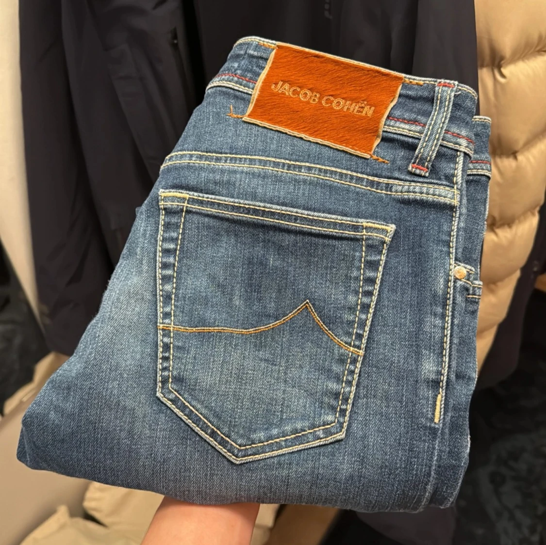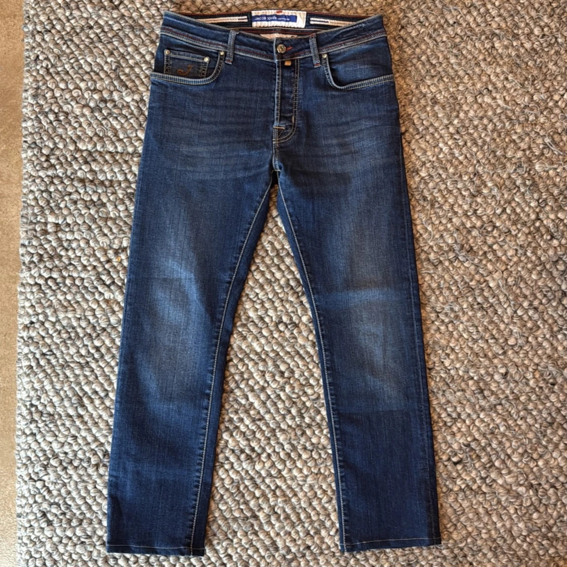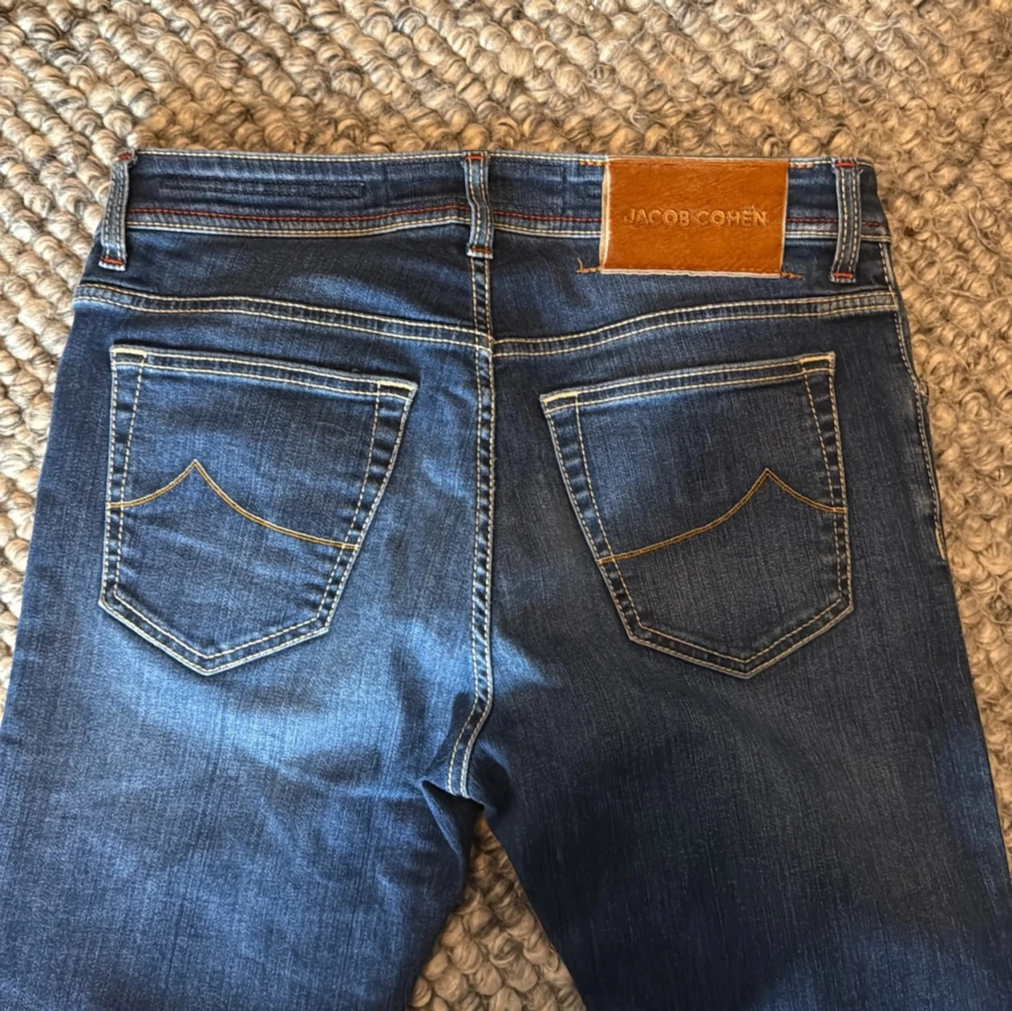 Snygga blå jeans från Jacob Cohen med klassisk femficksdesign och kontrasterande sömmar. Jeansen har en knappgylf och Perfekta för en stilren look.