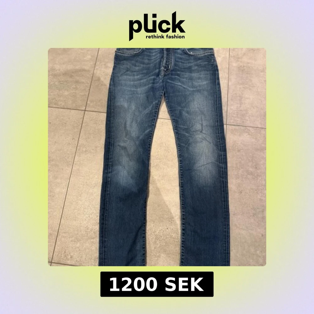 Snygga blå jeans från Jacob Cohen i klassisk straight fit med normal passning. Lappen bak är sydd på i hörnet annars är byxorna felfria. Jeansen har en cool tvätt med ljusare partier och tydliga sömmar, samt unika bakfickor och patch med logga. Tillverkade i Italien av mjukt bomullsmaterial för skön känsla.