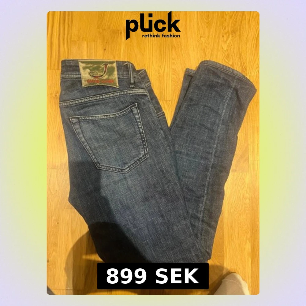 Säljer ett par snygga mörkblå jeans från Jacob Cohen i klassisk femficksmodell. Jeansen har diskreta kontrastsömmar, exklusiv patch bak och är tillverkade i mjukt denimtyg. Perfekt passform och italiensk design för dig som gillar stilrena jeans.