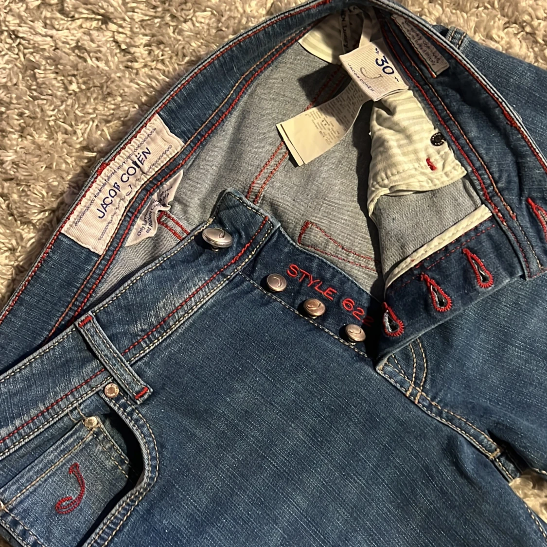 Säljer dessa riktigt snygga Jacob Cohen jeansen i modellen 622 som har en slim passform. De är i riktigt bra skick, använda fåtal gånger och är i storlek 30. Bara att skriva över frågor och funderingar.