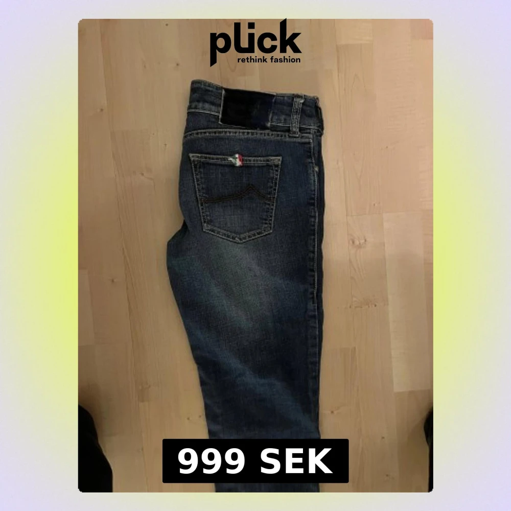 Snygga blå jeans från Jacob Cohen, modell 713. Klassisk femficksdesign med kontrastsömmar och detaljer i italienska färger vid fickan. Jeansen har dragkedja och knapp framtill, och är tillverkade i mjukt denimtyg med lätt tvättad look.
