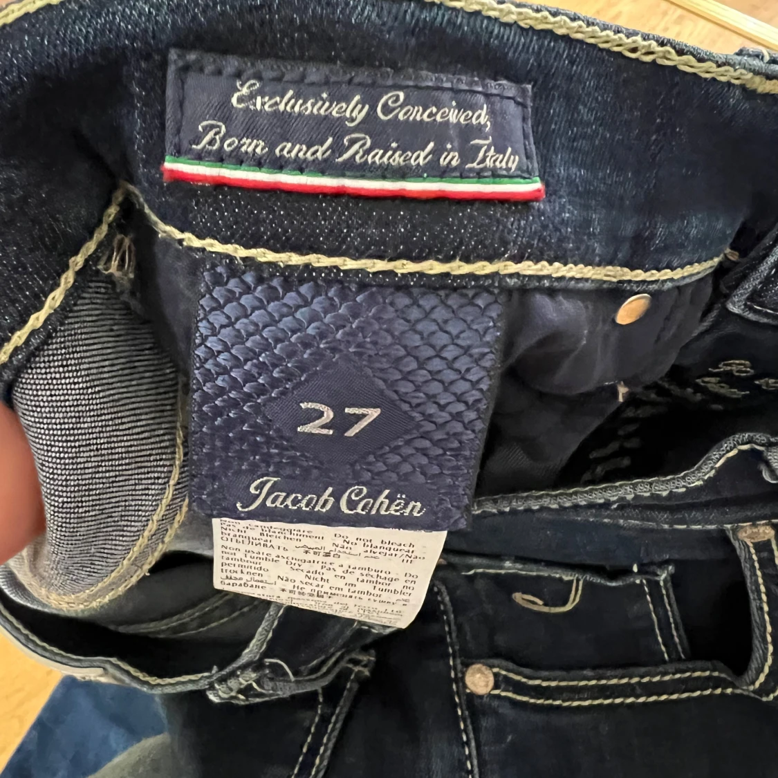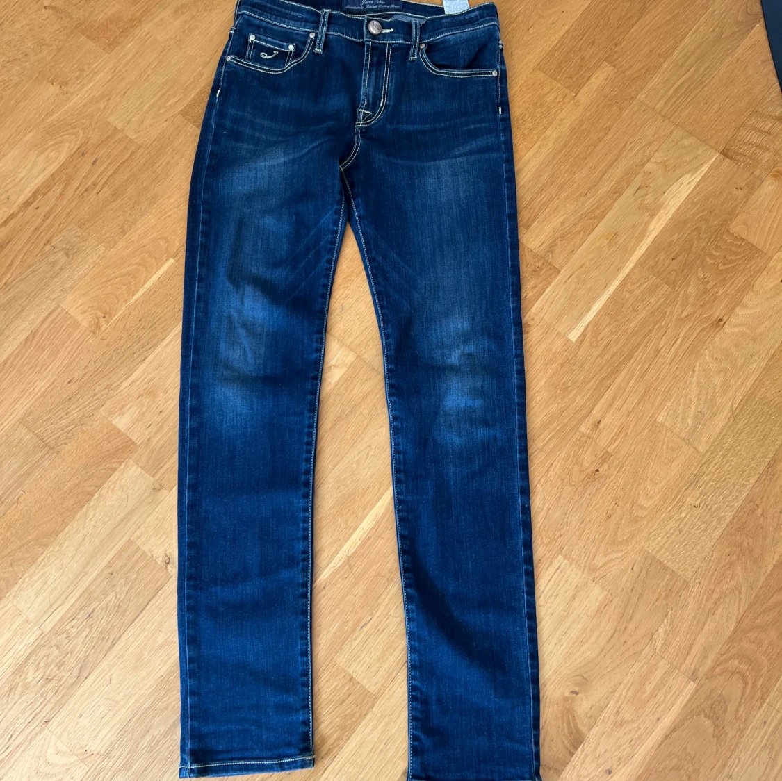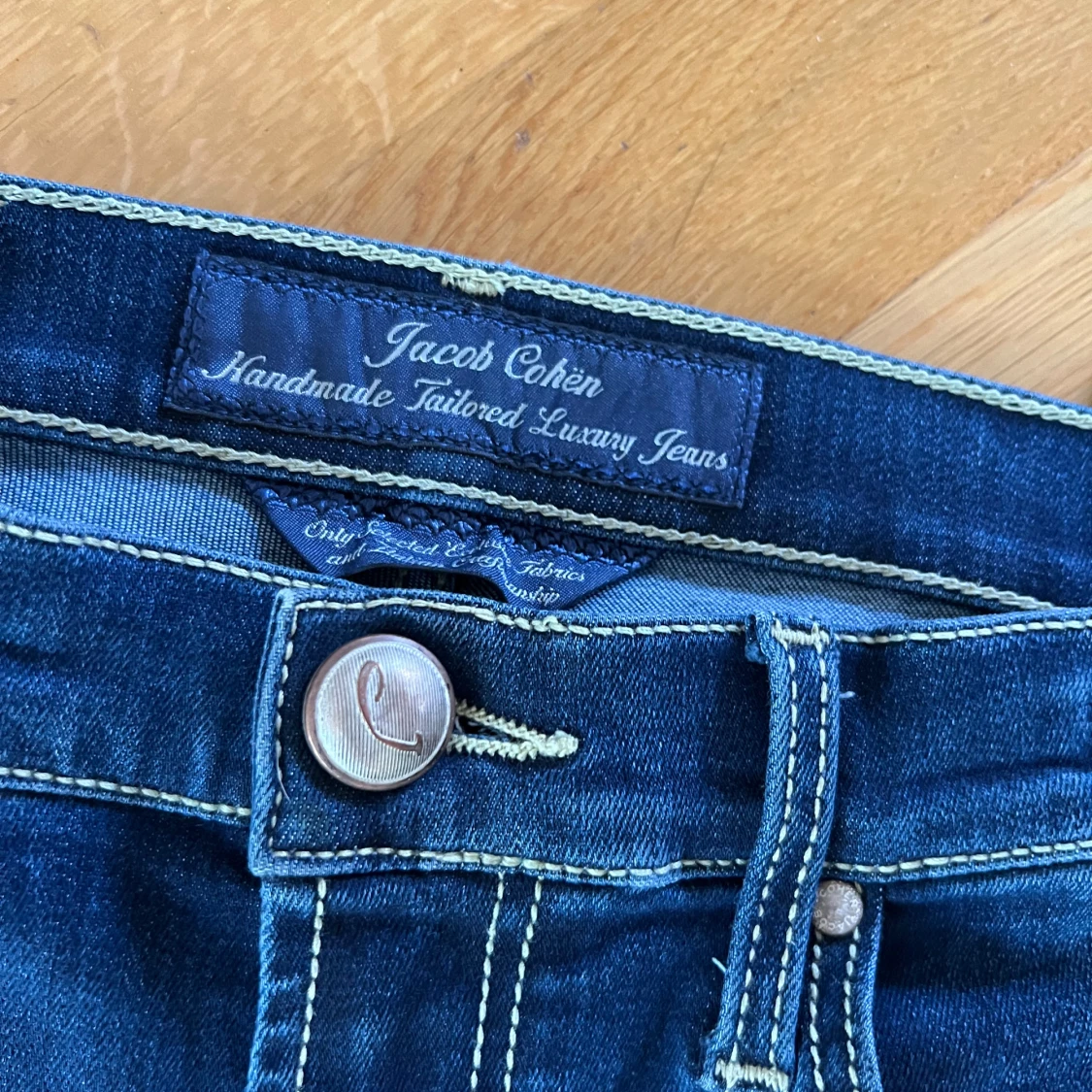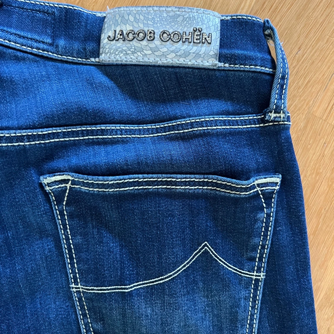 Snygga blå jeans från Jacob Cohën med kontrastsydda sömmar och klassisk femficksdesign. Modellen är skinny med smal passform och raka ben. Jeansen har exklusiva detaljer som märkets logga på bakfickan och en unik knapp framtill. Perfekta för dig som gillar stilrena och lyxiga jeans.