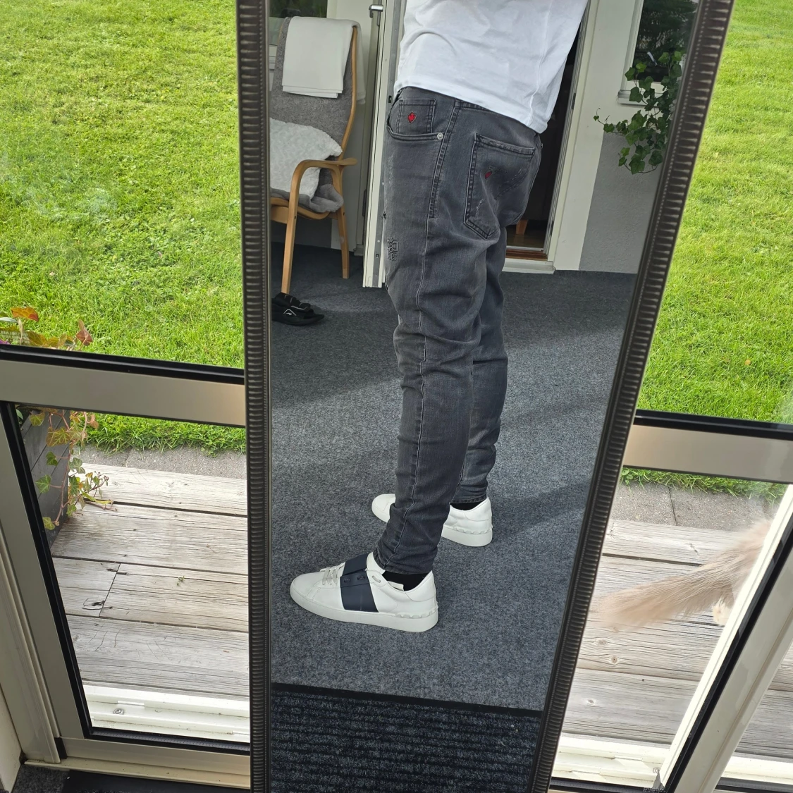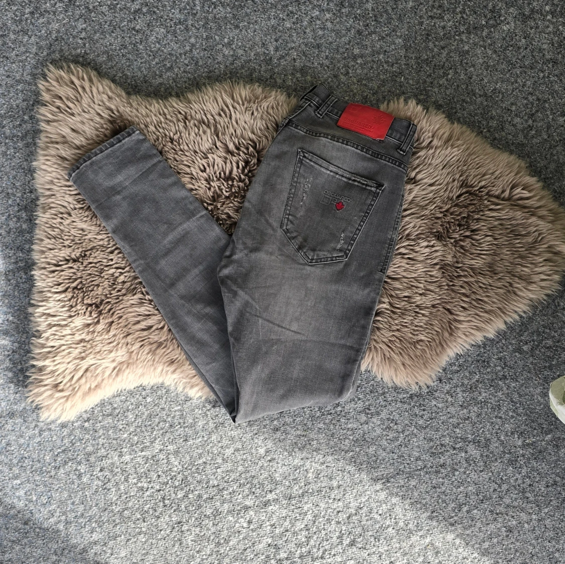 Snygga Dsquared2 jeans I storlek 32/32. Nypris över 8000 kr. Mitt pris 1499 kr 🤝. Skriv om du undrar något! 🤩 Observera att lappen lossnat lite i ena hörnet bak, syns dock inte när man har på sig dem.