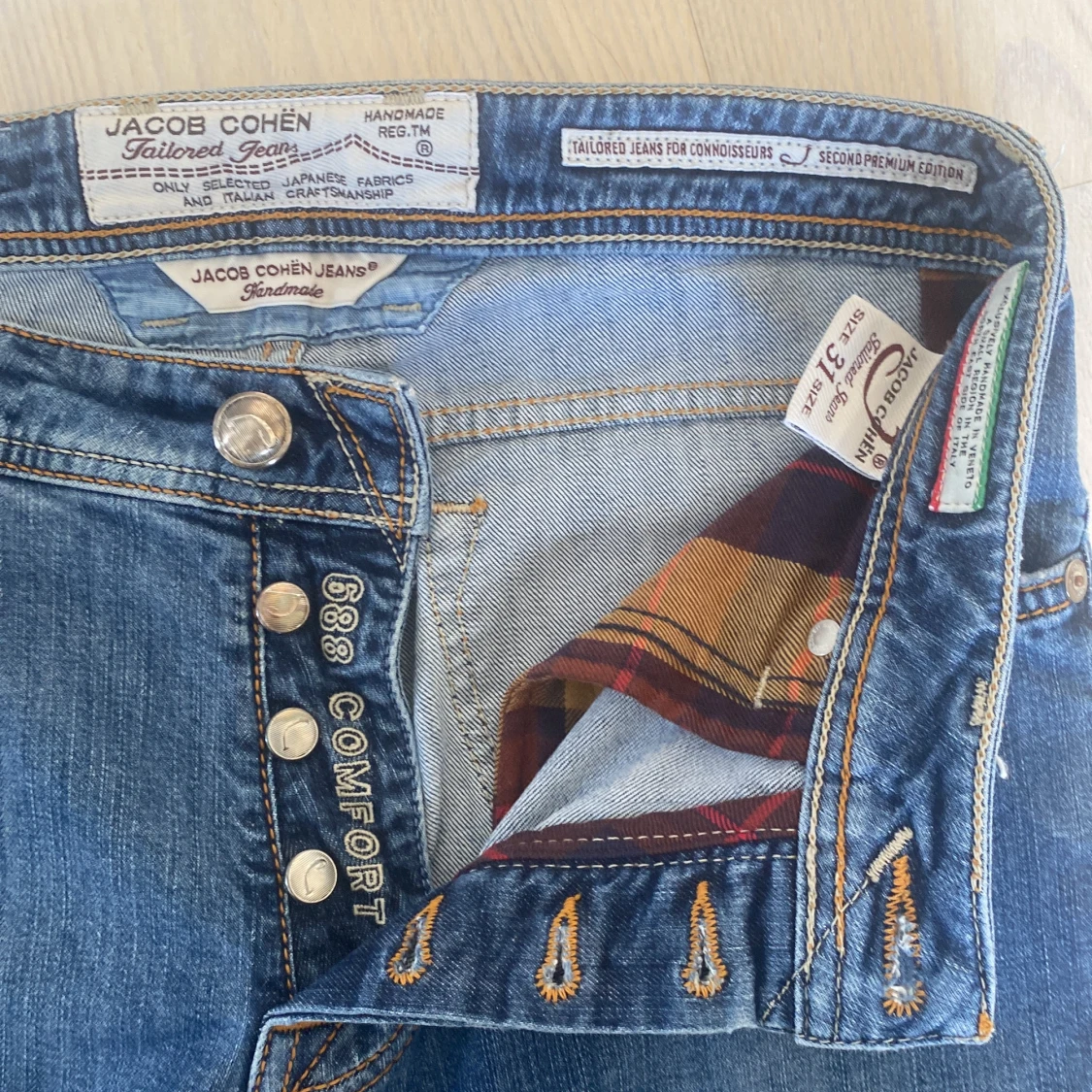 Säljer nu dessa feta Jacob Cohen Jeans då de var för små. Passformen är 688 C, slimfit. Skicket är riktigt bra bara att lädret är lite slitet vid midjan. Storleken är 31 men skulle säga att de passar mer 29/30. Skriv för frågor och prisförslag!