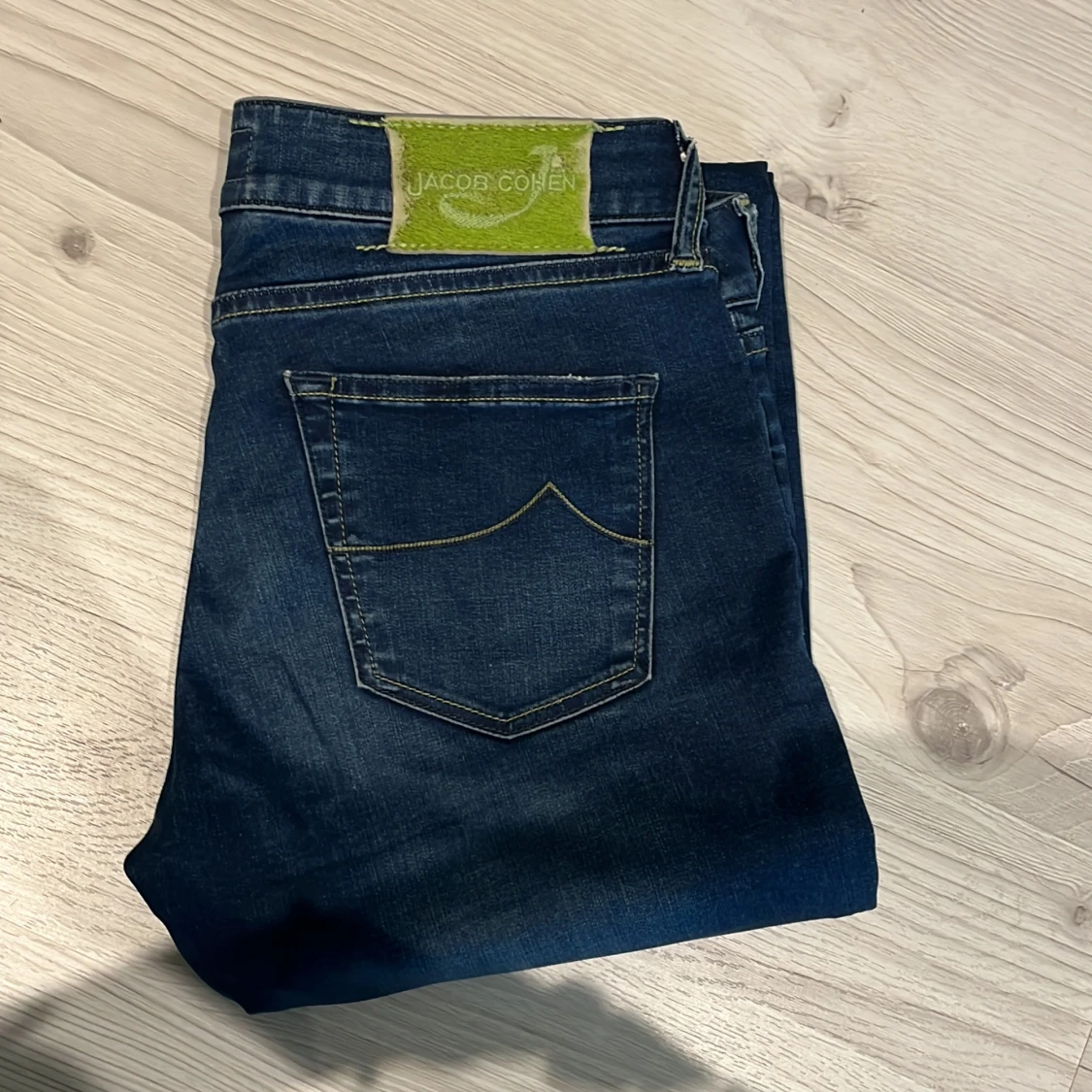 Säljer ett par riktigt feta Jacob Cohen jeans. Det sitter som vanliga cohens storlek 29 (alltså lite mindre än vanlig storlek). Just den här modellen med gröna deltaljer är ganska svår att få tag på. Skriv vid funderingar eller om det är något!