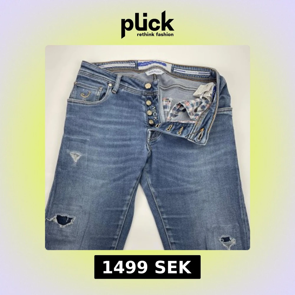 Snygga blå jeans från Jacob Cohen med slitna detaljer och hål på benen. Klassisk femficksmodell med gylf med knappar och ljus tvätt. Jeansen har en normal passform och är tillverkade i mjukt denimtyg för en bekväm känsla.