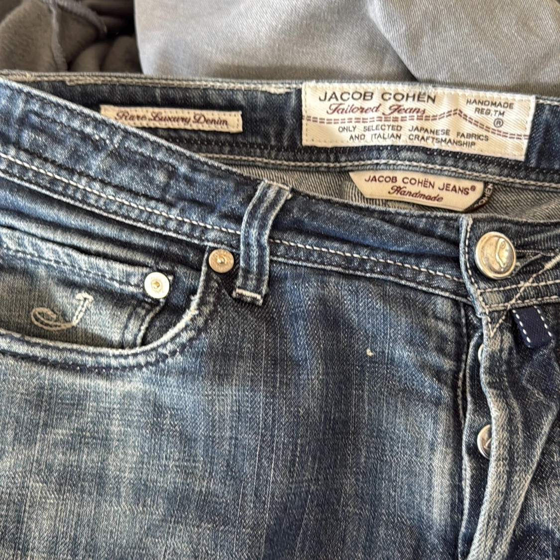 Blåa jacob cohen jeans i storlek 33. Jeansen är ganska så använda men är ändå i väldigt bra skick.