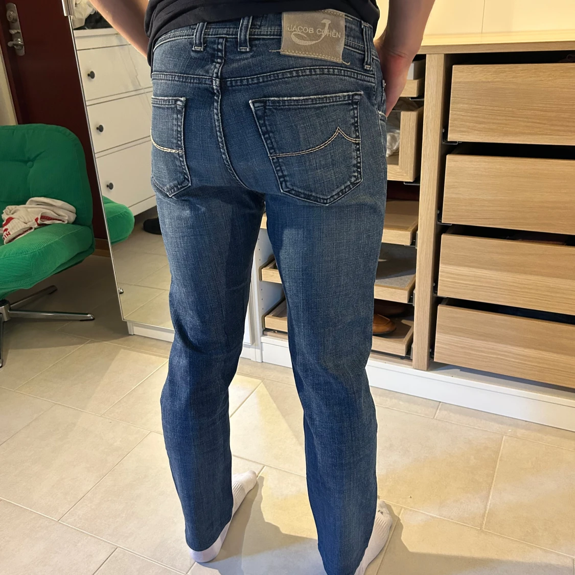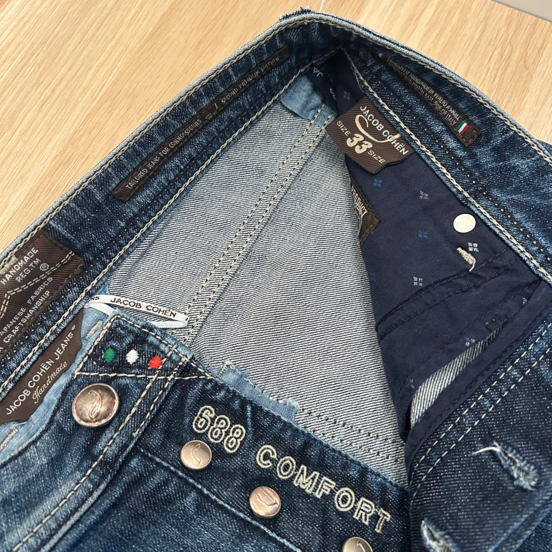 Tvärfeta jacob cohen jeans i snygg tvätt😁| Modell: 688 comfort | W33 | Defekter: Nej | Midja: 84 cm | Innerben: 70 cm | Ytterben: 97,5 cm | Måttavvikelser +-1 cm | Modellen är 175 cm och väger 70 kg | Vänligen kontrollera mått innan köp🤗 | Tveka inte att kontakta mig vid övriga frågor😁!