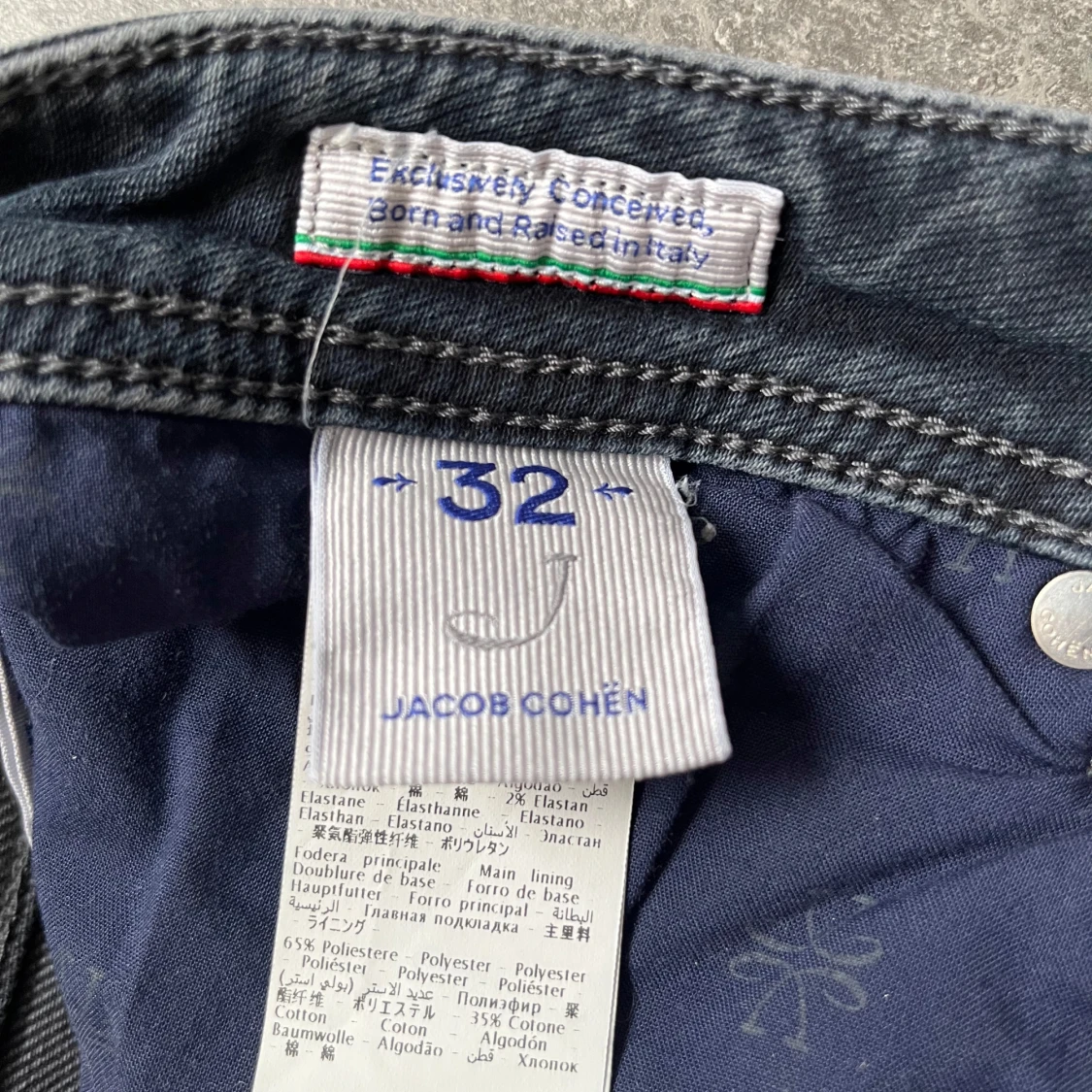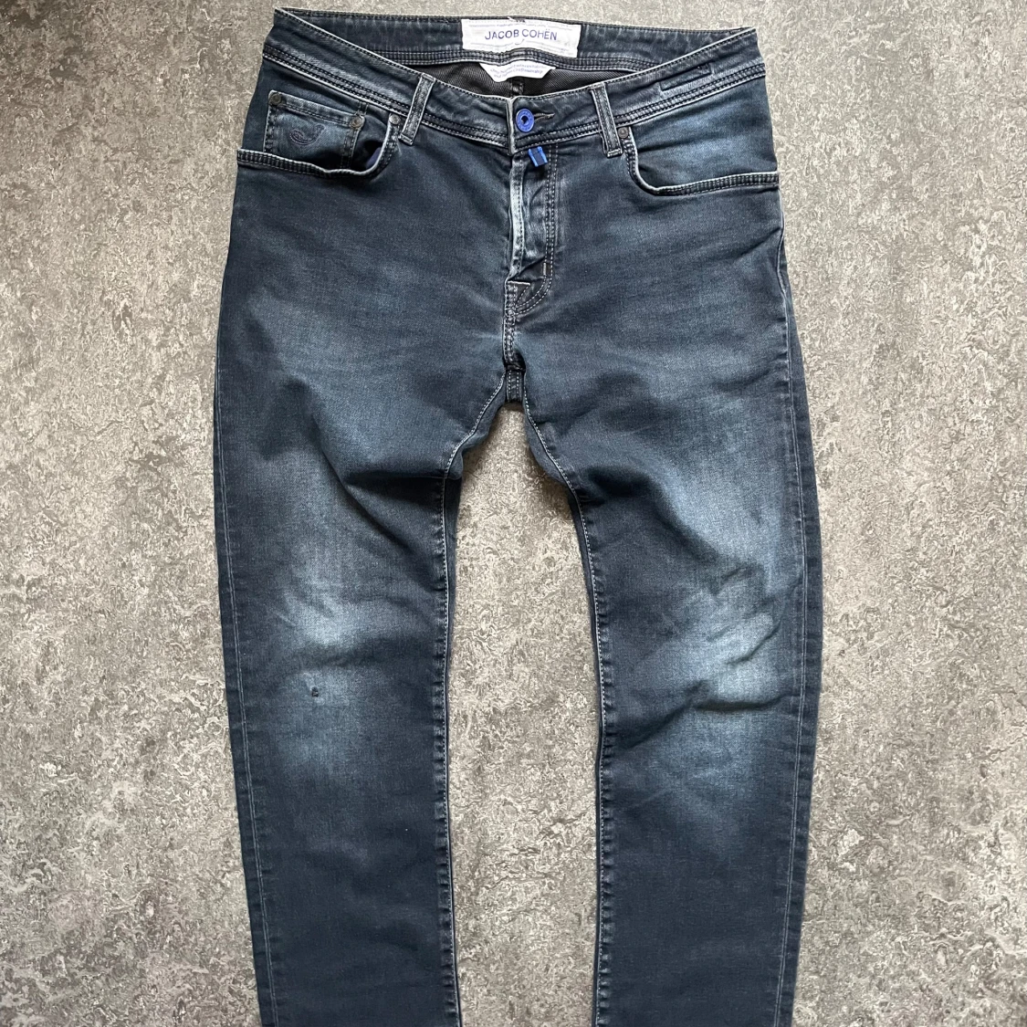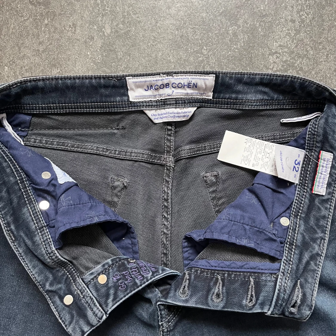 Ett par mörk blå Jacob Cohën-jeans i nyskick, storlek 32, Längd-94cm Bredd-41cm, alla jeans tillverkade i Italien med exklusivt material och etiketter. Om du har några frågor eller funderingar är du välkommen att kontakta mig!!