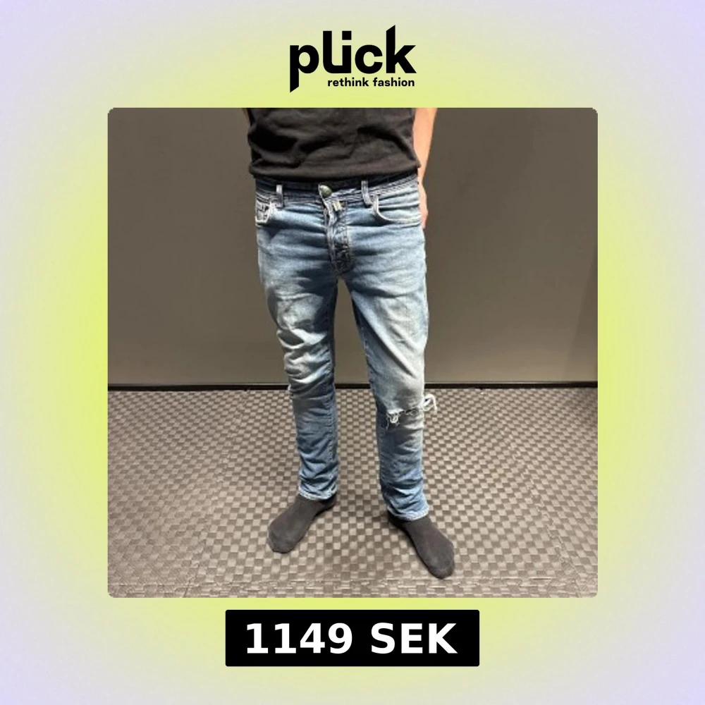 Sjukt snygga blå jeans från Jacob Cohen med slitningar och hål på knät.😁 loggan backtill är sliten. Hör av dig vid frågor🫡