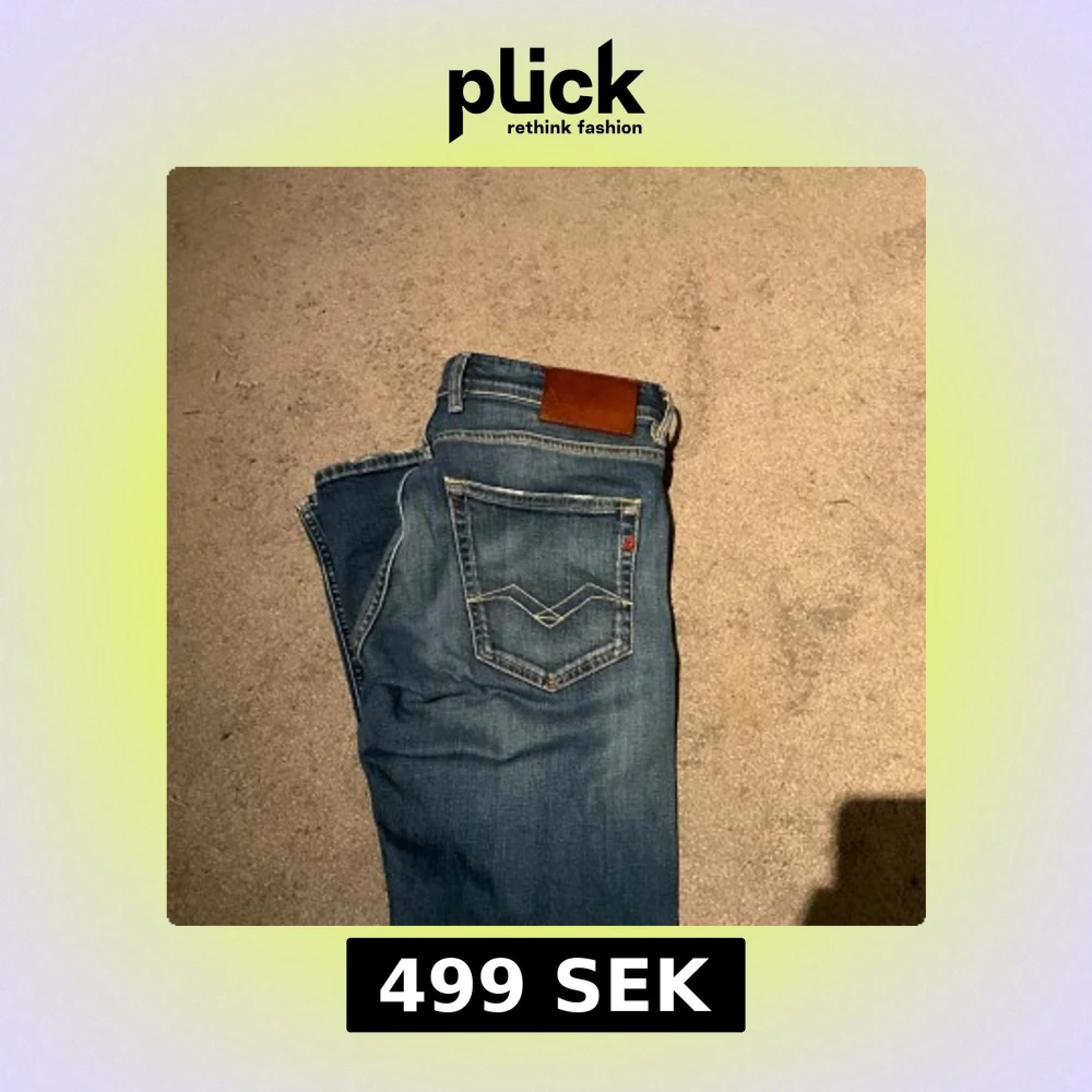 Snygga blå jeans från Replay med klassisk femficksdesign och en läderdetalj vid midjan. Perfekta för en avslappnad stil. De har en rak passform och är tillverkade i slitstarkt denim.
