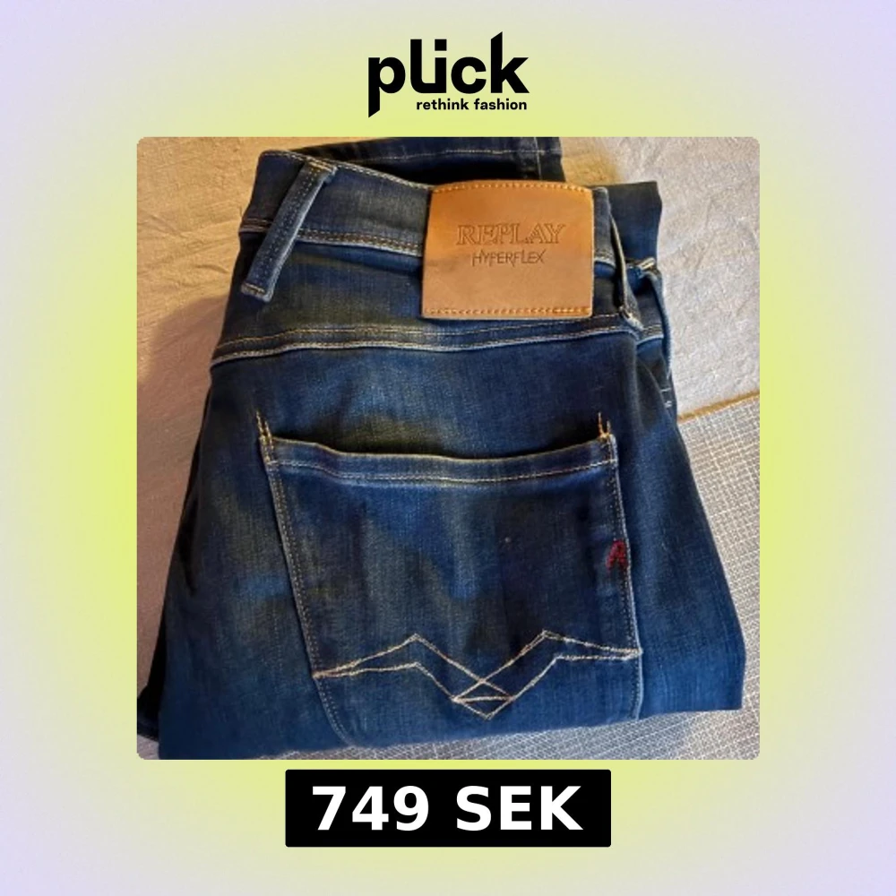 Snygga Replay Hyperflex Anbass jeans i mörkblå tvätt med slim fit-passning. Klassisk femficksdesign, stretchigt jeansmaterial och detaljerade sömmar. Märkespatch i läder baktill och Replay-logga på myntfickan. Perfekta för dig som gillar stilrena och bekväma jeans. Nästan oanvända. W29 L32