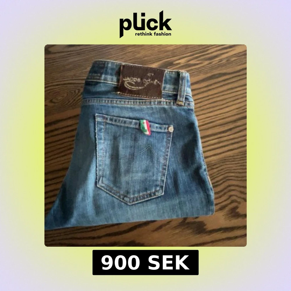 Snygga blå jeans från Jacob Cohen med klassisk femficksdesign och en liten italiensk flaggdetalj på bakfickan. Jeansen har en normal passform och är tillverkade i mjukt denimtyg med lätt slitning för en cool look. Dem sitter otroligt bra men är för stora så därför är dem till salu. Hör av dig vid frågor🏆