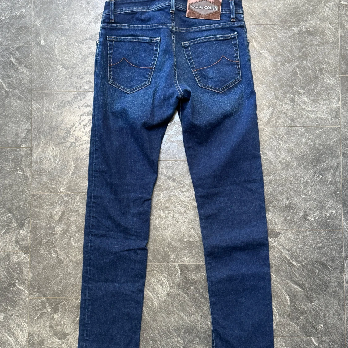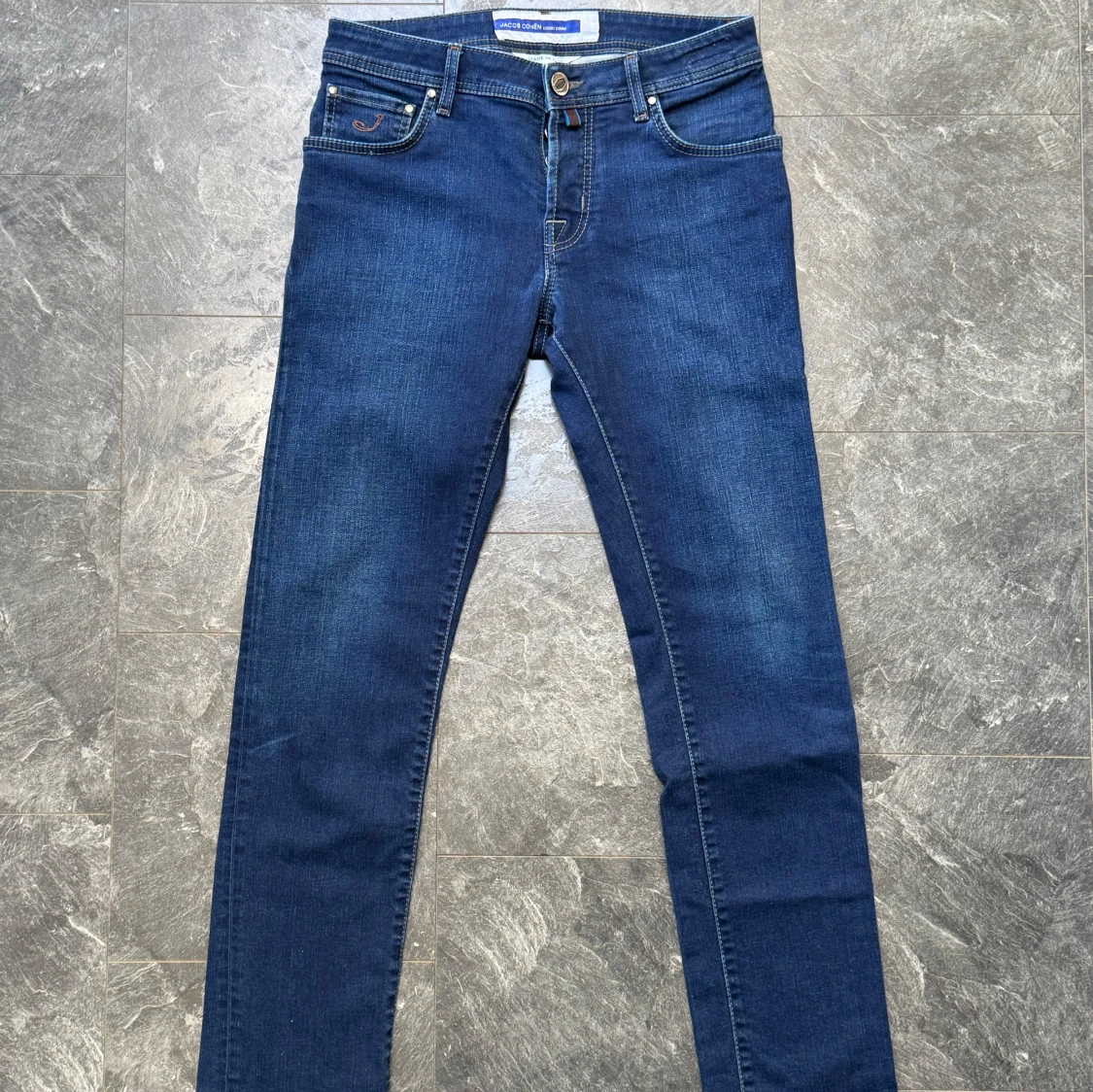 Snygga blå jeans från Jacob Cohen med klassisk femficksdesign och knappgylf. Tillverkade i Italien med högkvalitativt material för en stilren look. Perfekta för en avslappnad men ändå elegant stil. Modell nick.