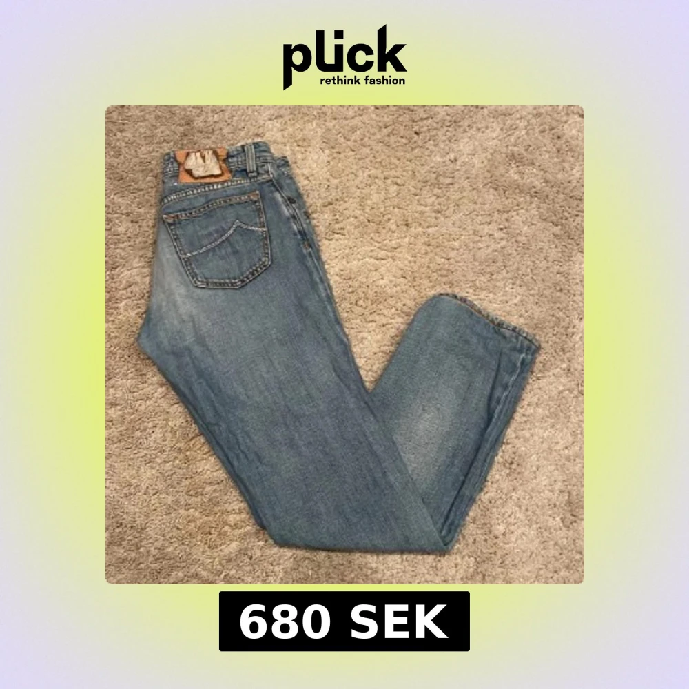 Säljer ett par klassiska blå jeans från Jacob Cohen med fem fickor och snygga kontrastsömmar. Byxorna har normal passform och är tillverkade i mjukt denimtyg. Perfekta till vardags för en avslappnad stil.
