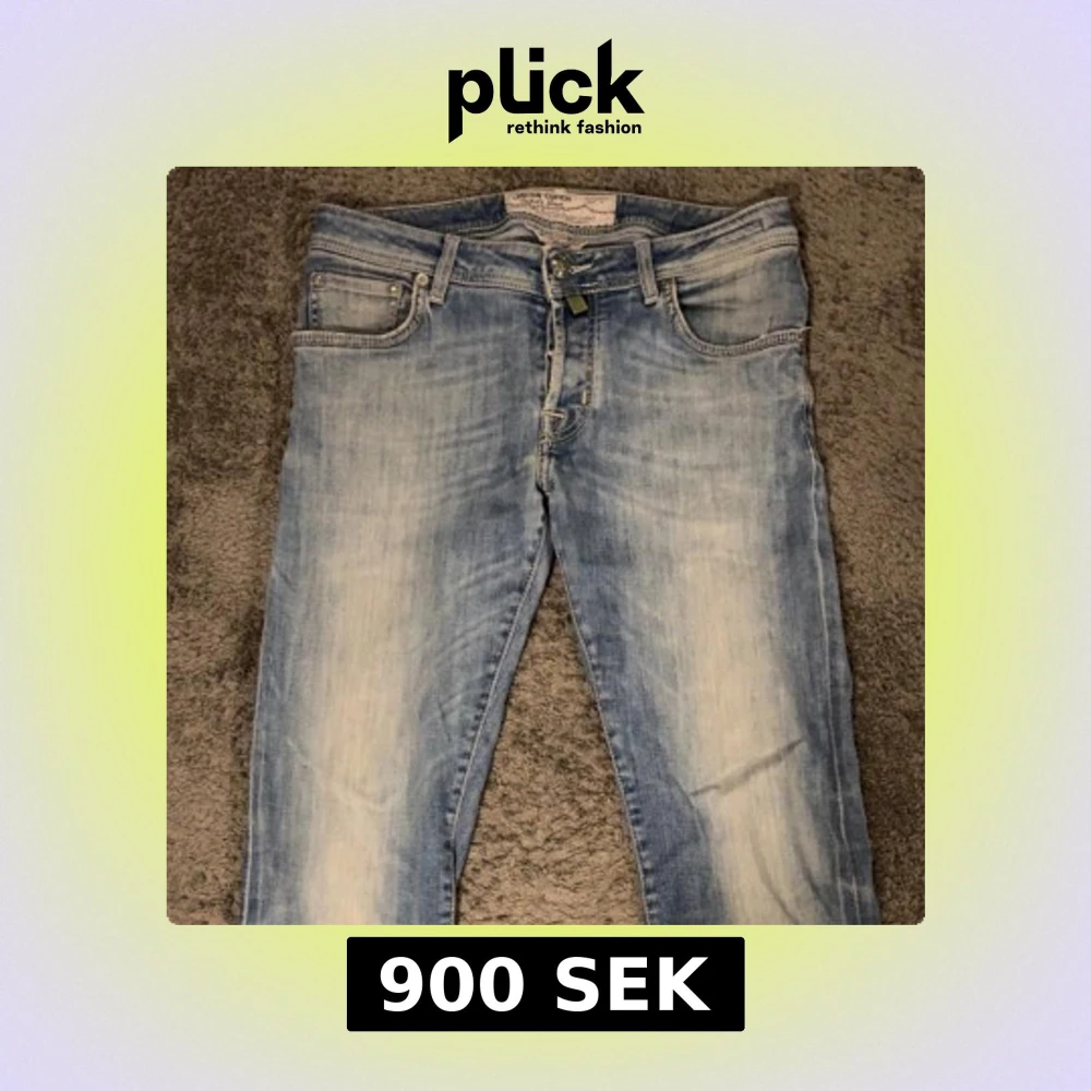 Säljer ett par ljusblå jeans från Jacob Cohen med snyggt slitna detaljer och klassisk femficksmodell. Jeansen har en grön patch med logga bak i midjan och är tillverkade i mjukt denimtyg. Perfekta för dig som gillar en avslappnad men trendig look.