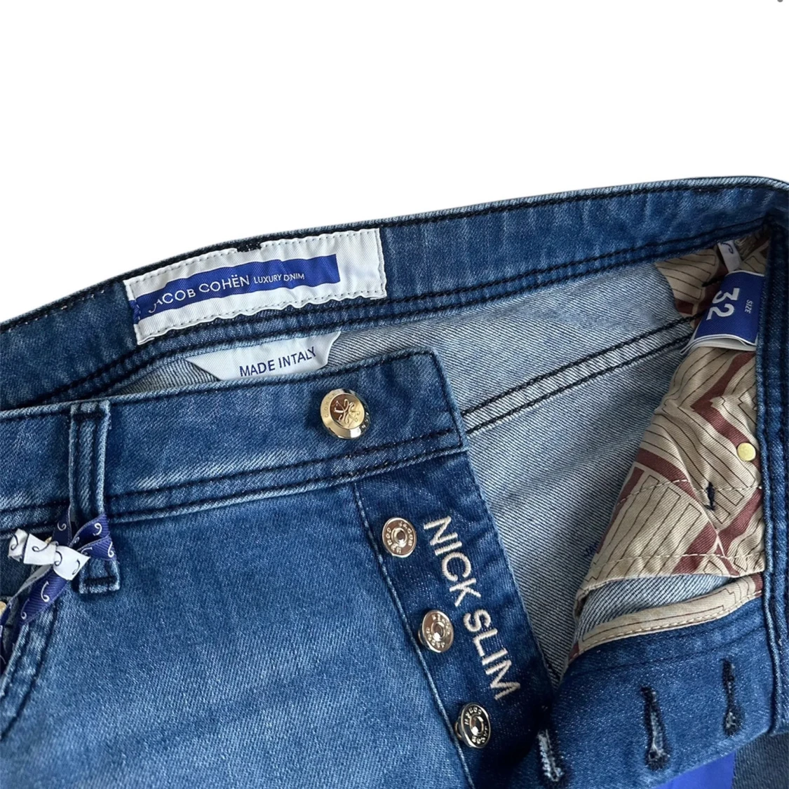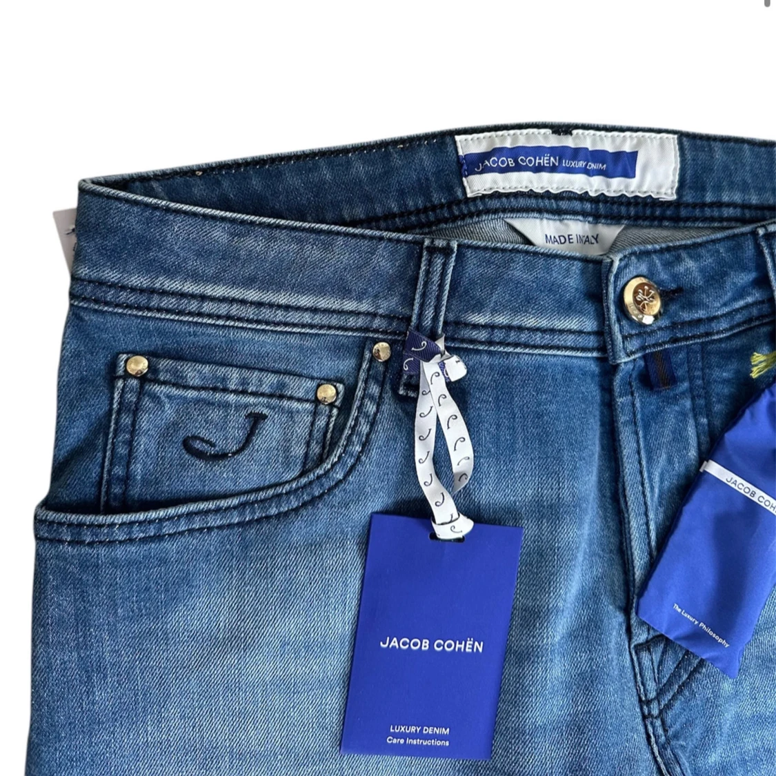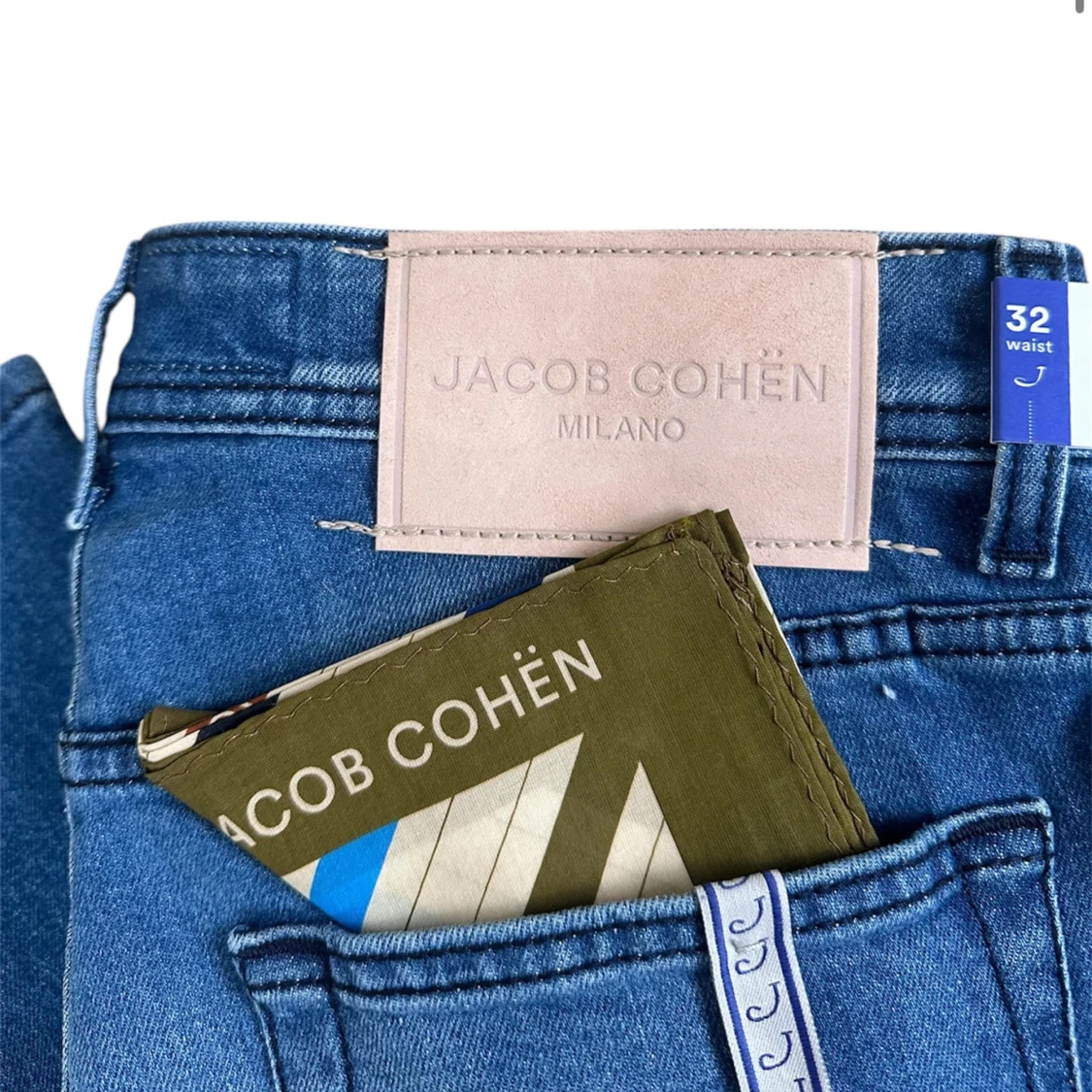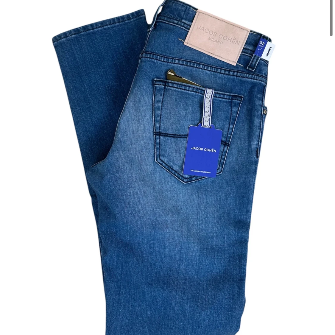 Brand: Jacob Cohën Size: 32 Recommended fit: W32 but could have to be tailed sewn in the length! Condition: Brand new with tags, dustbag, scarf and more. Details: Italian luxury at it’s best, Golden-tone hardware buttons. shop now fashionels.com