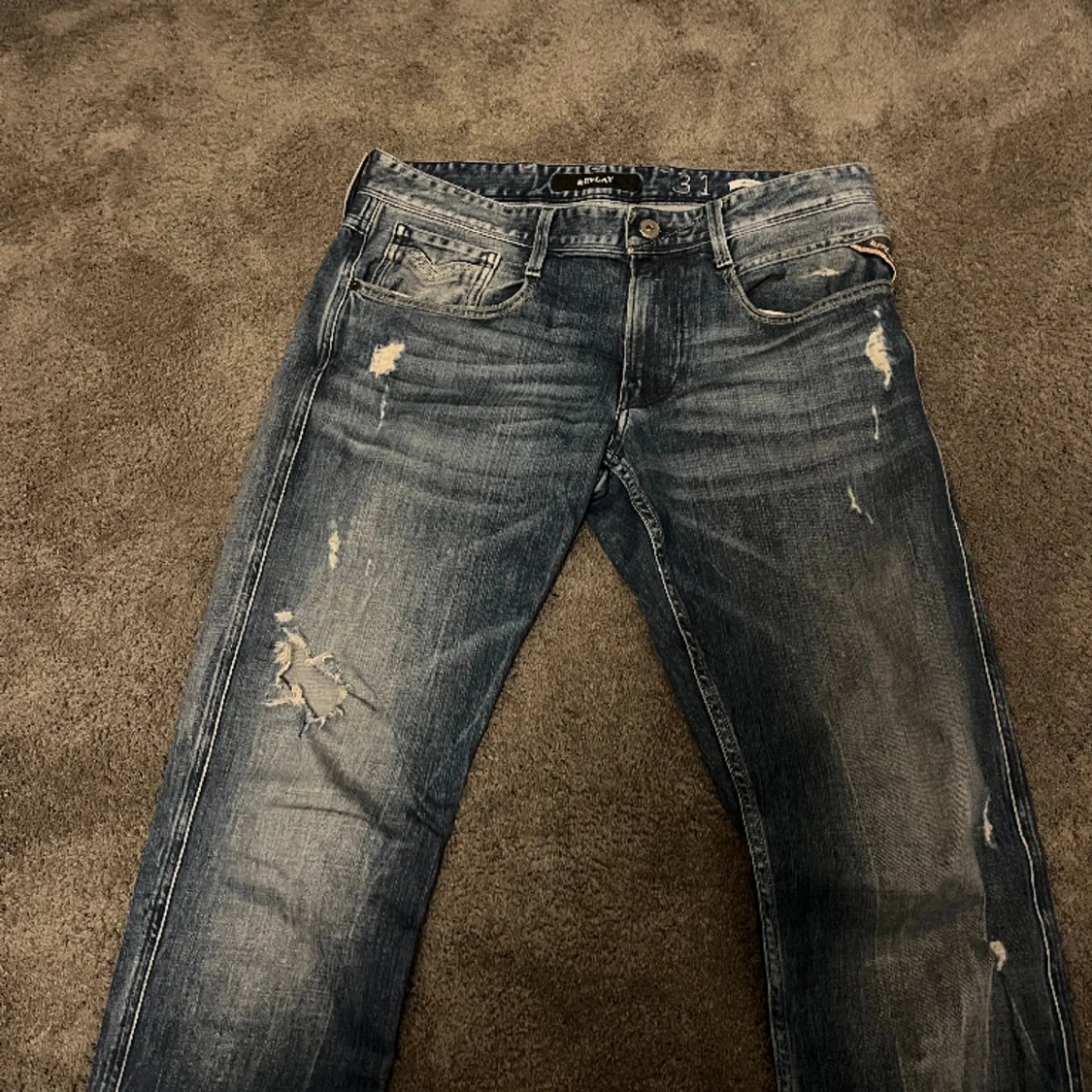Säljer nu mina sjukt snygga replay anbass i en sliten modell. Jeansen är använda endast ett fåtal gånger och är i ett sjukt bra skick. 9.5/10 i skick. Priset kan diskuteras vid snabb affär. Vid minsta lilla fråga är det bara att höra av sig.