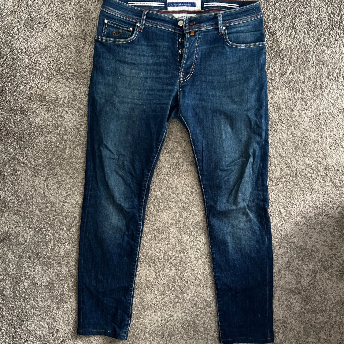 Tjena, säljer nu dessa as feta jeans från Jacob Cohën | Storleken är 36 (passar midja 34) | Färgen är mörkblå och skicket är 9/10 | Nypris 6000kr | Hör gärna av dig vid minsta lilla fundering 😊
