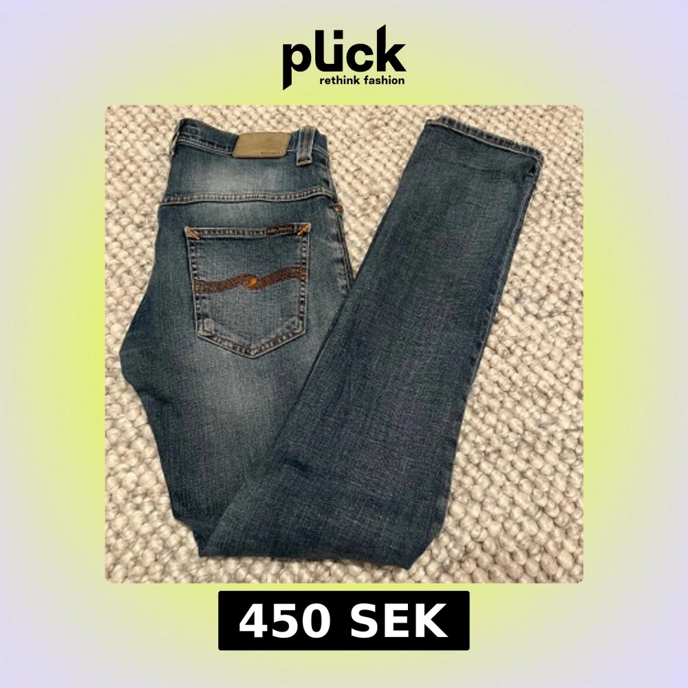 Säljer dessa snygga och eftertraktade jeans från märket Nudie!| Storlek: W29 L34 | Modell: Thin Finn | Skick: 8/10 (Lagad slitning i skrevet, syns på 2:a bilden) | Nypris: 1600kr