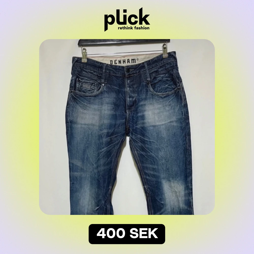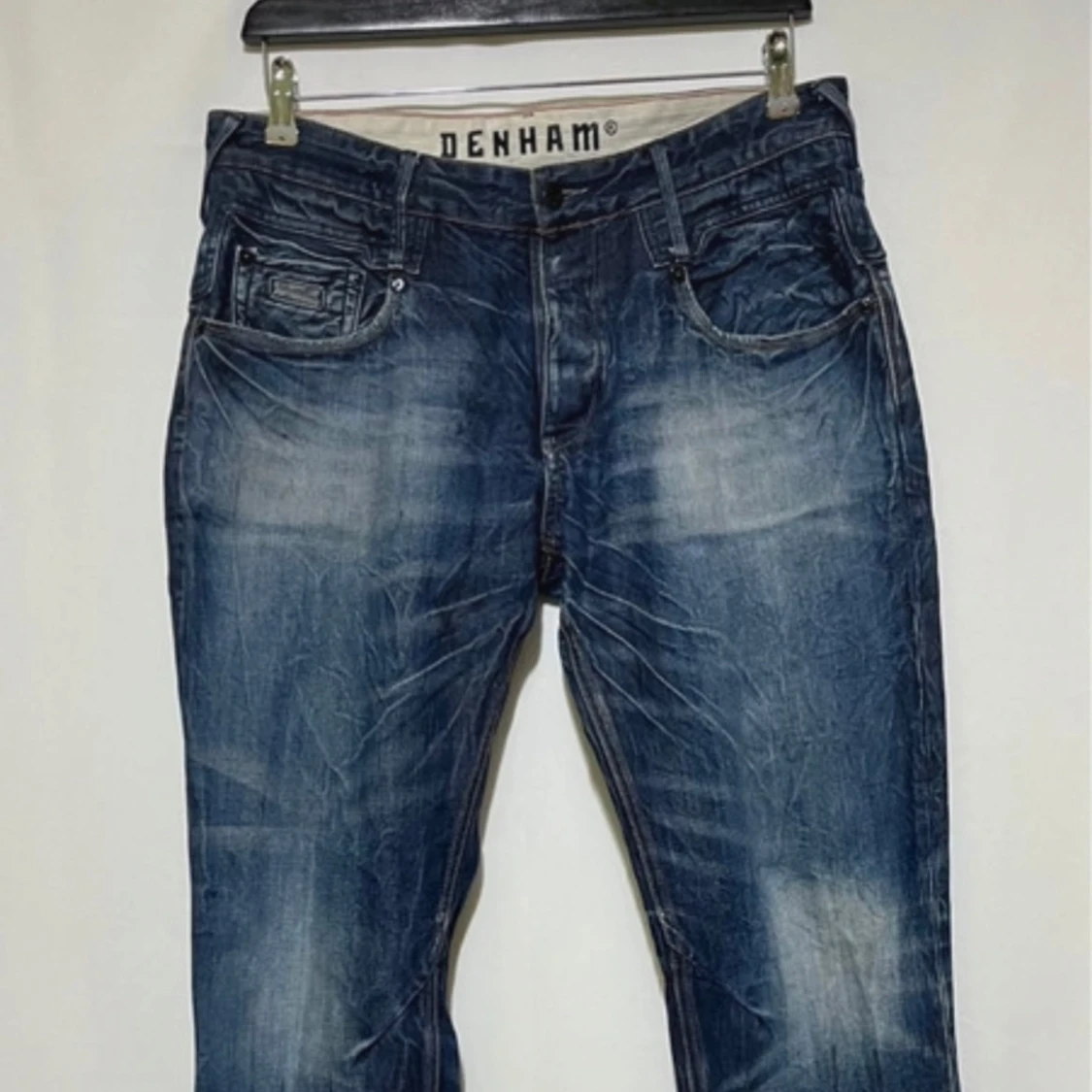 Säljer ett par snygga blå jeans från Denham i modellen Cutter+. De är slim fit W 33.