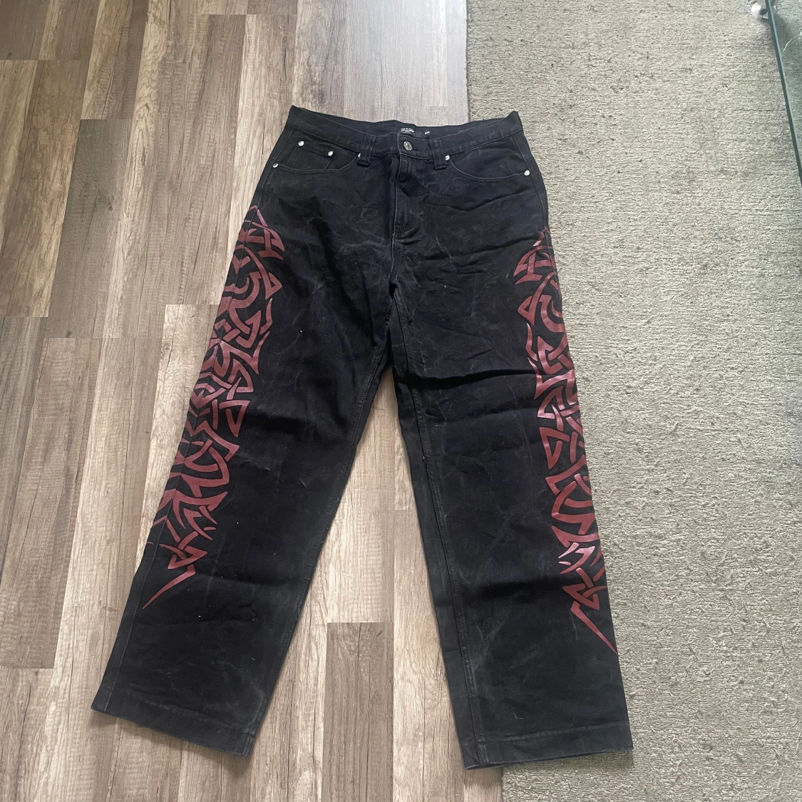 Jaded London y2k Jeans. Skick 5/10 de vita vid fötterna går att tvätta bort Stl 34 300kr eller bud