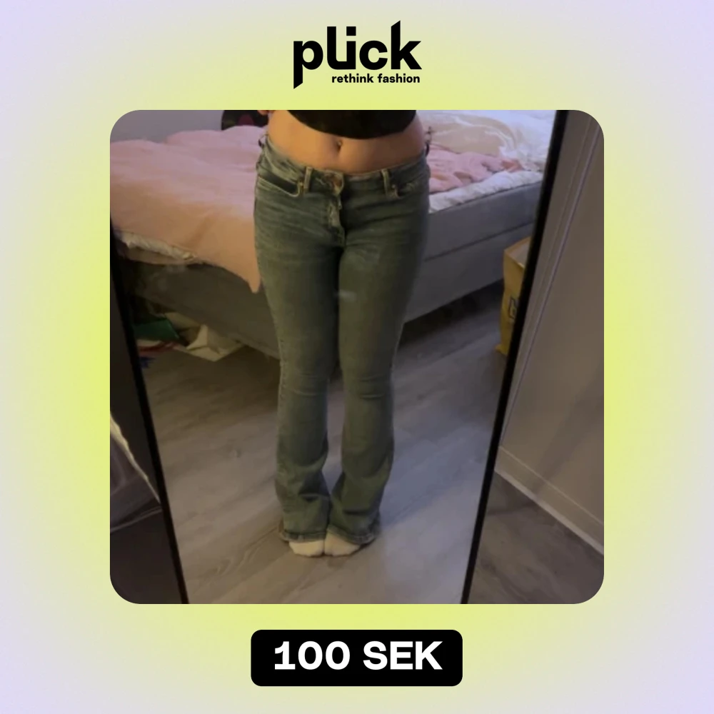 Super fina och sparsamt använda jeans från never denim! Skulle säga att de är mid rise och lite långa på mig som är 160! Nypris 399 mitt pris 100 + frakt🥰