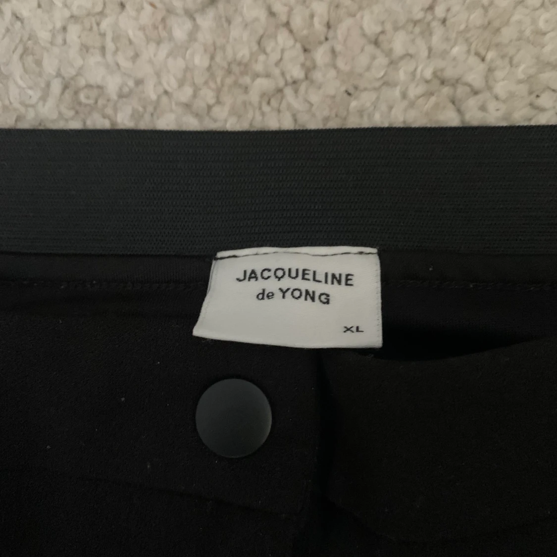 Svarta kostymbyxor från Jacqueline de Yong i storlek XL men de är ganska små i storleken så skulle säga att de är i M/L. Super skönt material och fickor på sidorna. Köparen står för frakten!🖤