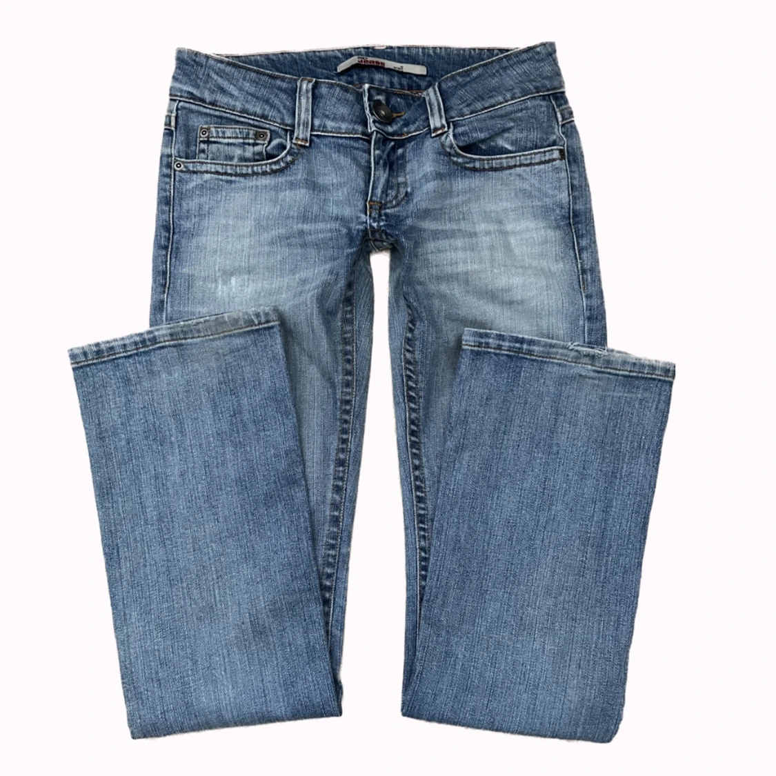 Fett snygga lågmidjade y2k jeans, sitter lite bootcut! Midjemåttet: 37,5cm tvärsöver Innerbenslängden: 80cm PS: kolla igenom mitt konto ni kommer hitta många y2k och vintage plagg!