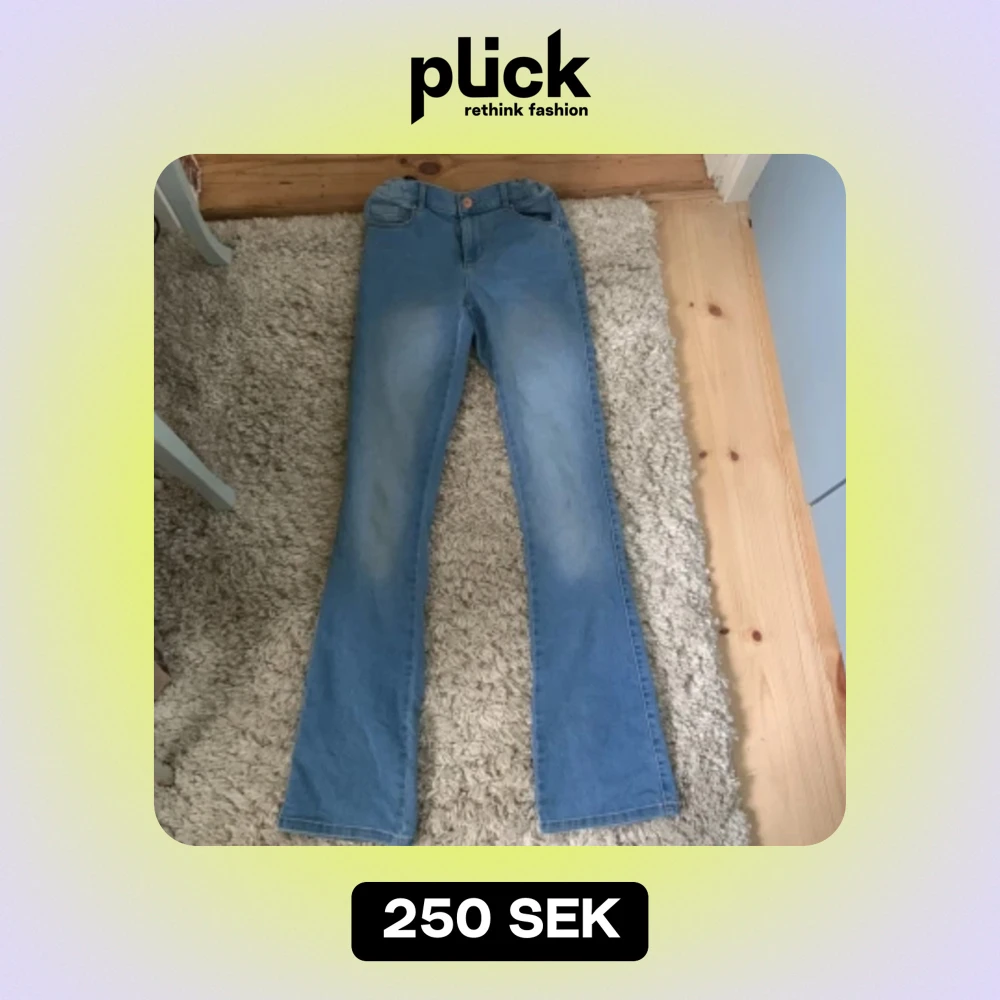 Jag säljer dessa ljus blåa boutcat jeans från only i st 164 används högst 5 gnr i ny skick 🩶💙 jag är själv 1,62 och dom passar perfket kan även redigeras i midjan🤍