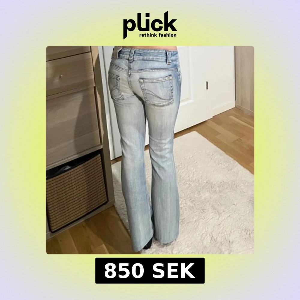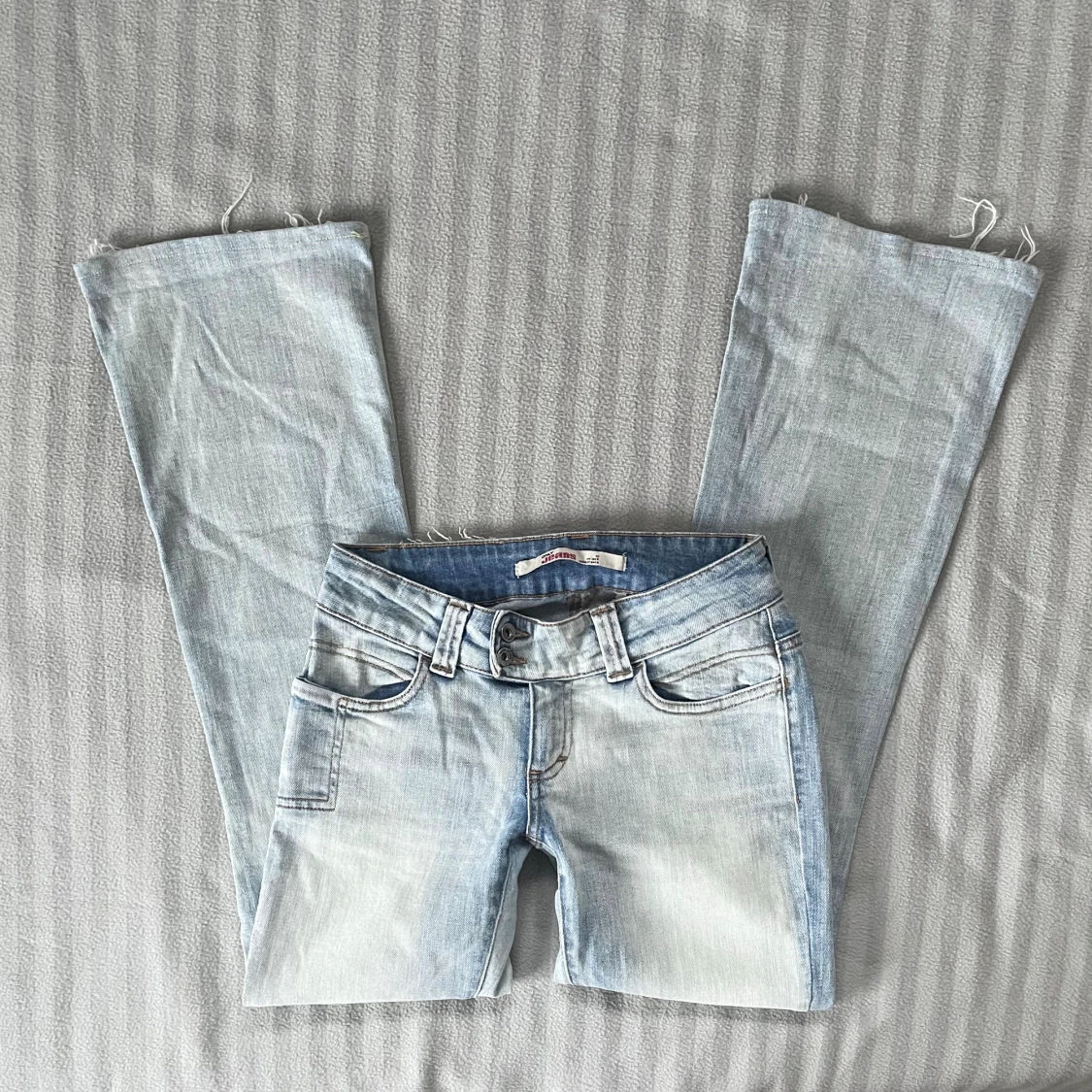 Superfina ljusblå utsvängda jeans från ONLY, i strl S // midja 37cm tvärsöver, innerbenslängd 76cm // jag är 173 för referens ❤️