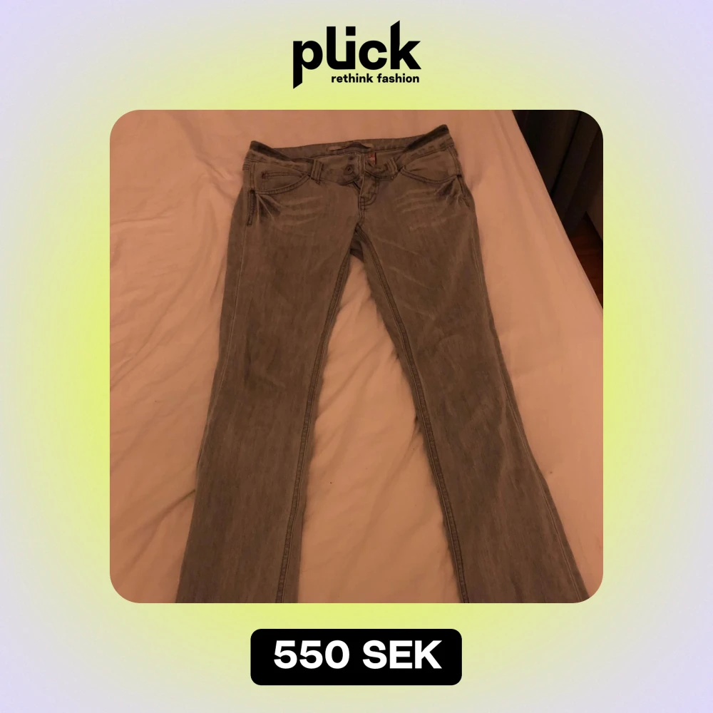 Säljer dessa perfekta gråa lågmidjade jeansen eftersom jag köpte fel i storleken, då modellen är kortare. Jeansen är i jättebra skick och inga skador💕Ny pris: 850 Pris kan diskuteras.