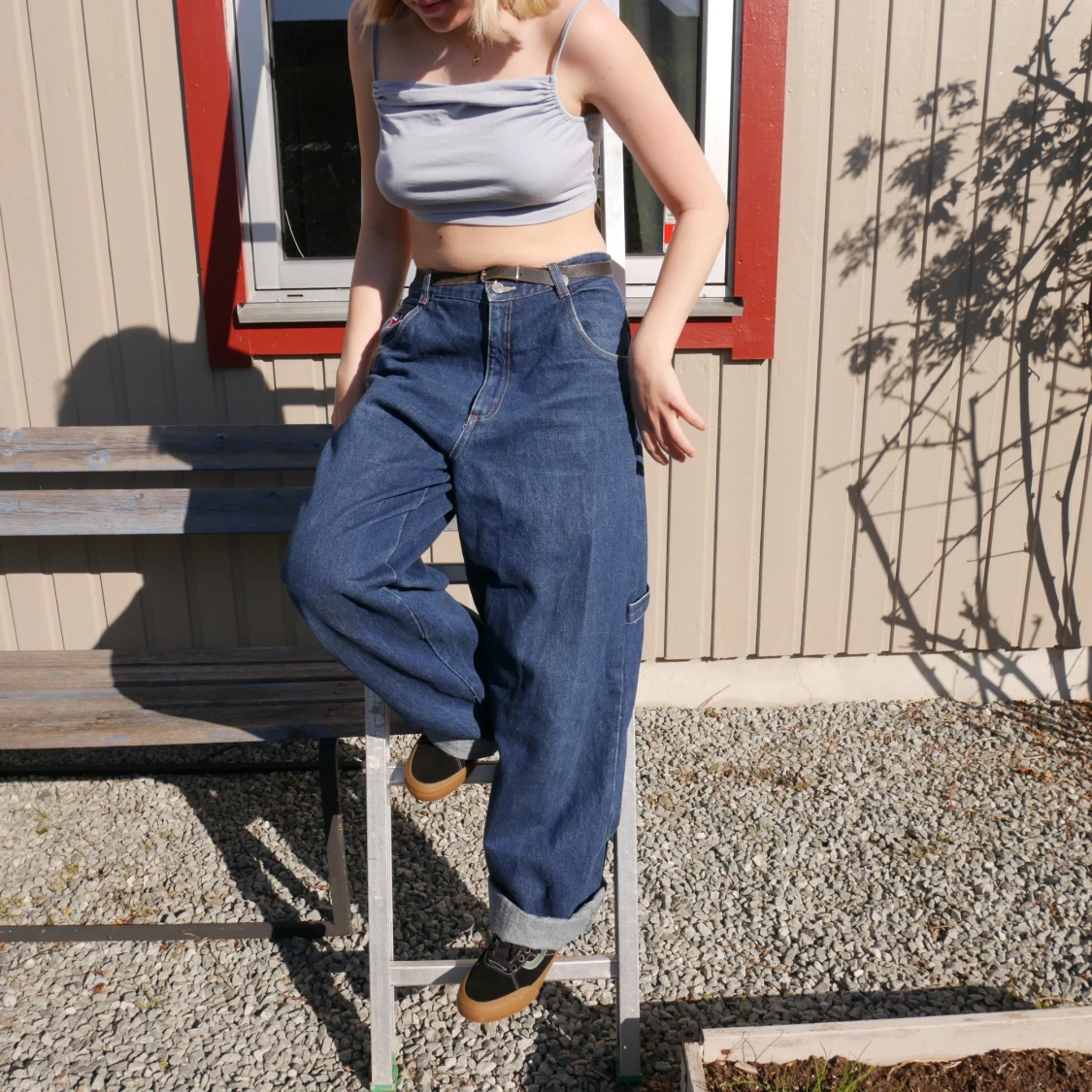 Sjukt feta jeans, dom är för stora på mig därför säljer jag. Hon på bilden är en XS/S så dom kan passa på mindre storlekar om man vill ha dom baggy!