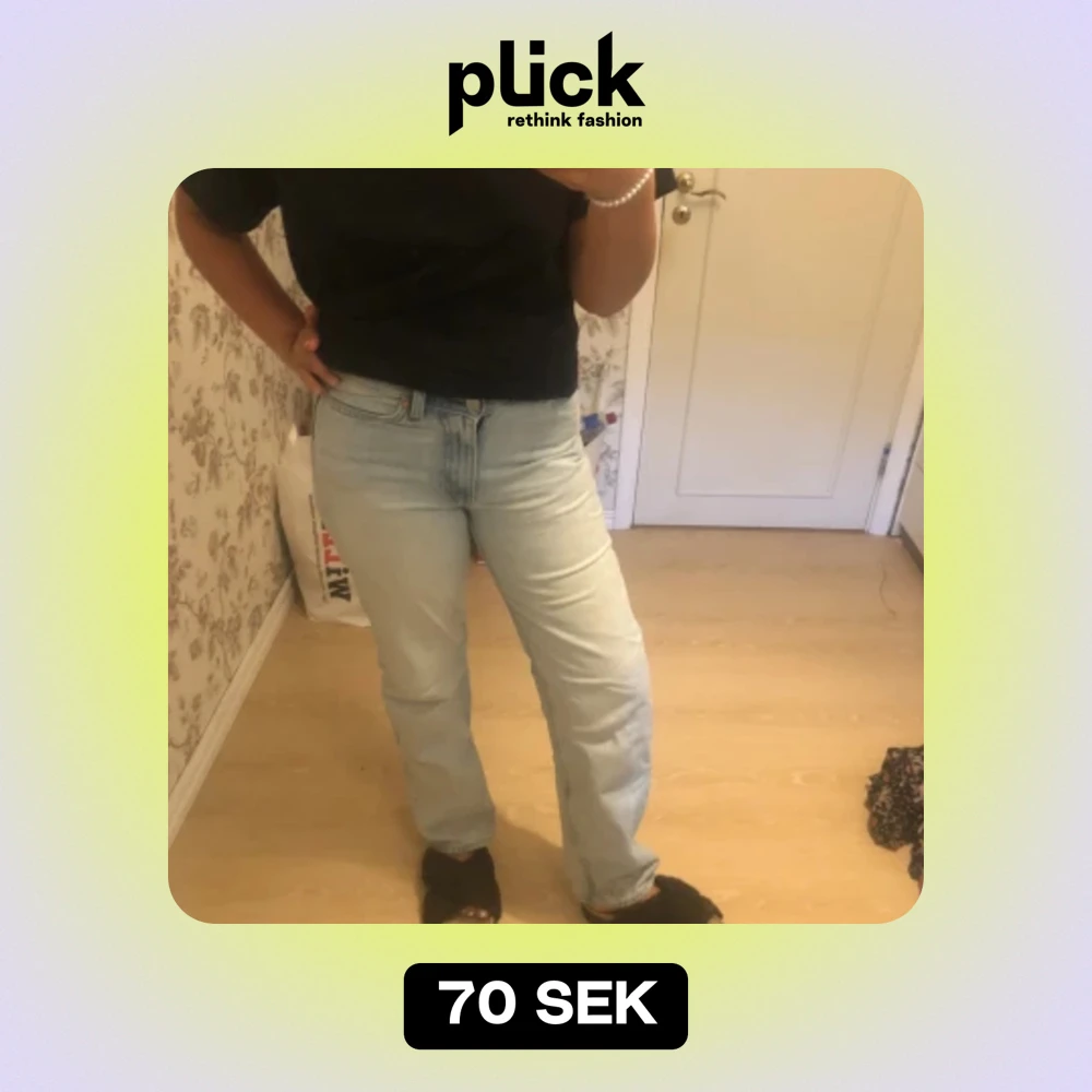Fina jeans från weekday, vet ej modell. Fläck som jag inte fått bort av vanligt tvättmedel (bild 3). (Jag är 163)