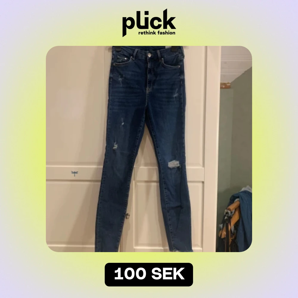 Skinnyjeans med hål i storlek 36. Tror det är H&M jeans. Har fickor både fram och bak. Är i princip helt oanvända.