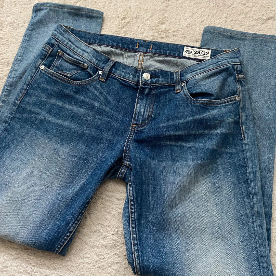 Säljer ett par jeans som är köpta på Sellpy och inte används längre. Midja: 41 cm, Innerbenslängd 74 cm, lår ca 26🫶🏼