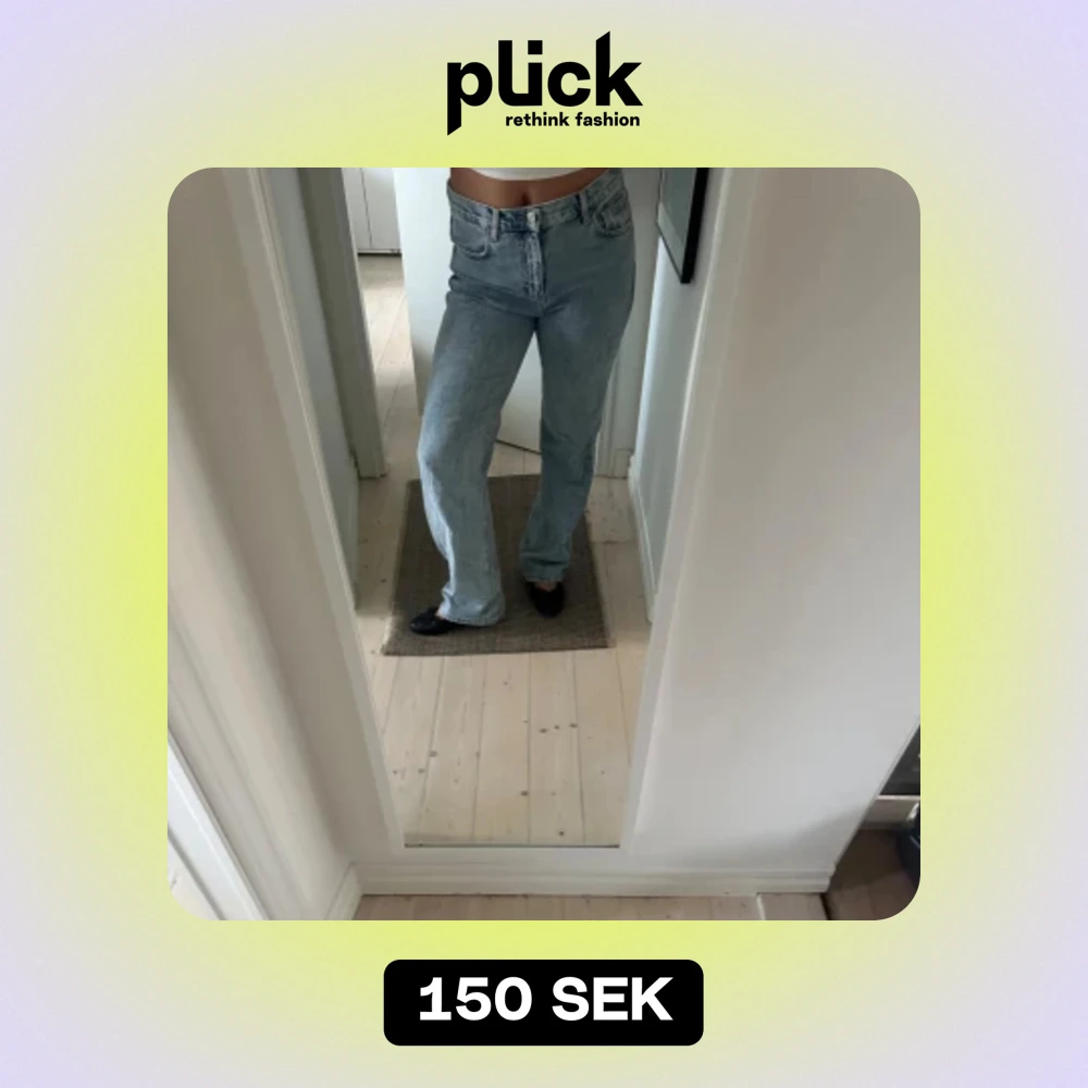 Juliana studios Stockholm City Jeans - Helt nya jeans från Juliana Studios! Det är deras Stockholm City Jeans. Köpte de för totalt ~1300kr. Helt slutsålda! Säljer då de inte passade. Prislappen är kvar. Storlek XS. Bilderna är lånade från hemsidan och deras TikTok, men de två sista bilderna är mina. ❤️    Ett par ljusblå jeans med bootcut passform och låg midja. Jeansen har snygga slitningar och hål på benen för en cool och avslappnad vibe. Tillverkade i klassiskt denim-material och har fem fickor samt knapp och dragkedja framtill