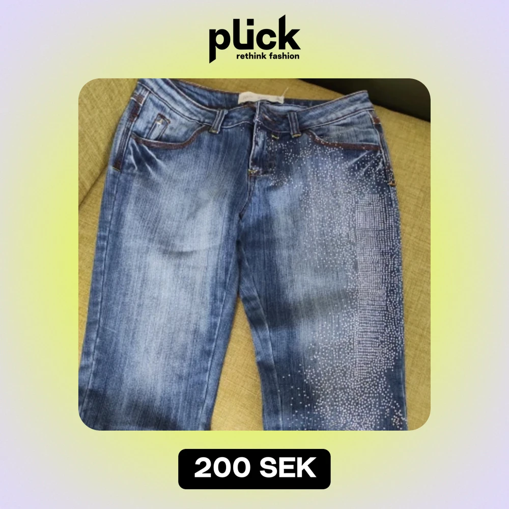 Knälånga jeans med glitter som på bilden.